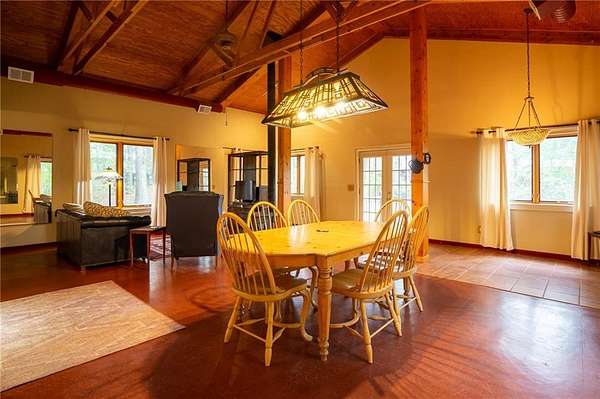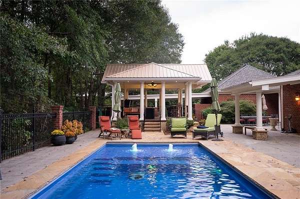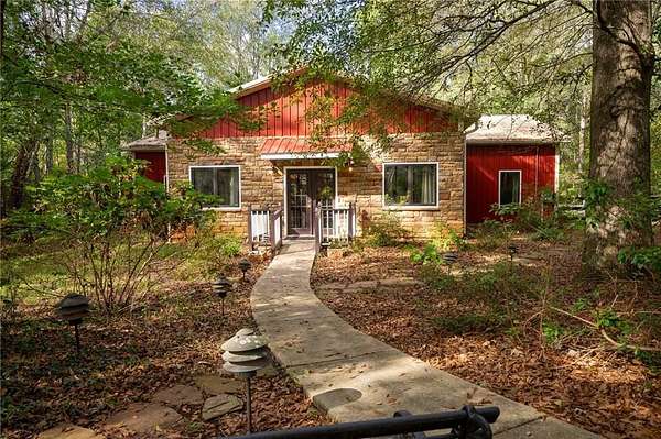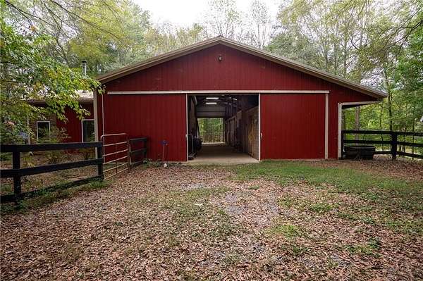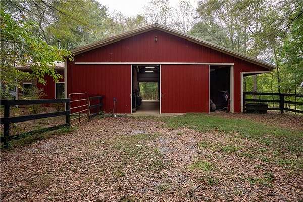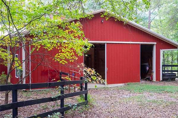 Welcome to 75 Rivercreek Crossing, an elegant riverfront estate home constructed of the highest-grade materials and craftmanship imaginable. Nestled on a private 18.5 acre lot within the highly coveted Riverwood Farms, a prestigious equestrian community along the Etowah River. Receive guests on the large wrap around front porch, a quintessential Southern design staple. Once inside, delight in the soaring two-story foyer flanked by a formal dining room and fireside sitting room. The gourmet kitchen will please any at-home chef with its commercial grade appliances, custom built cabinets, center island, stone countertops and charming overhead beams. A bright keeping room and cheerful breakfast nook complete this space. Currently hosting a baby grand piano, and ideal for a remote home office, the wood-paneled study, is a cozy respite with its crackling fireplace. The main level primary suite is a relaxing retreat boasting a marble-clad dual vanity washroom with a clawfoot tub and large walk-in shower as well as oversized closets with custom built shelving. Two additional secondary bedrooms, each with complete en-suite bathrooms, and a large bonus room encompass the entirety of the second level. Luxury living continues outside with a recently upgraded pool surrounded by extension stone patio leading to party pavilion complete with outdoor chandelier above the Vikings Spa hot tub. Tucked away from the main dwelling, the guest house was designed to emulate a posh hunting lodge featuring vaulted wood ceilings above the open-concept kitchen, dining and living space. Two additional bedrooms, a full bathroom, and additional laundry facilities create the perfect spot for out-of-town guests, or live-in staff options. Horse lovers will be thrilled with the professionally outfitted barn offering three stables, a tack room, storage and hay loft. Ample pastureland is surrounded by an outer wooded fence lined with field fencing and the front pasture uses a solar charged low voltage wire. A climate controlled two-car garage and adjacent two-car carport round out the exterior amenities. Idyllic setting is double gated for the utmost in privacy and security, surrounded by other multi-million dollar homes. This is truly a rare opportunity to own more than 900 feet of river frontage in Bartow County, convenient to Rome, Cartersville and commuting to metro Atlanta. Welcome home to a life of serene luxury at this grand estate home with lush grounds and magical equestrian wonder.