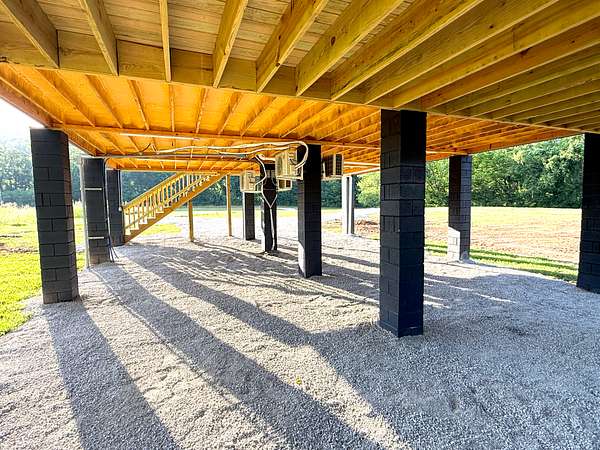 Enjoy river views from the covered 12x30 deck or relax by the firepit and seating area. The property also offers boat ramp access, a seasonal sandbar, a fishing dock, and a fully graveled area under the home for extra parking or outdoor space.