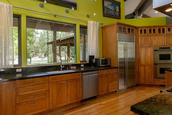 Est $9,371/mo- Radiant heat throughout (including garage) - highly energy efficient - Passive solar design with south-facing garage doors melts snow/ice naturally - Rocky Mountain hardware, solid wood doors, concrete/wood floors, metal roof - Backs to BLM land, paved driveway - New boiler (2020), water heater (2023), basement plumbed for 2nd kitchen