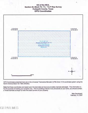 75 Tsp 5 S EC 40 T&P Se1/4Ne1/4, Sierra Blanca, TX 79851