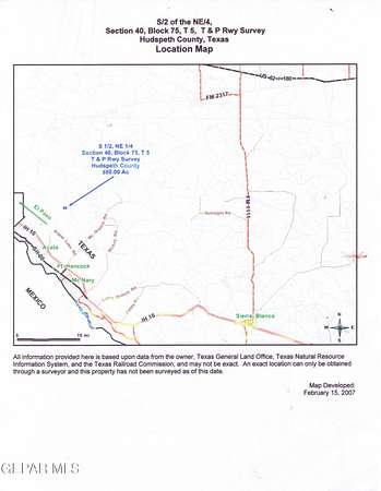 Est $449/moOwn a piece of Texas, few miles from Ft. Hancock and Fabens, TX, surrounded by beautiful mountains and wildlife, which can be used for Hunting, Farming, Ranching, Hiking, Camping and Recreation. Mostly leveled land. Great investment opportunity. Don't wait to own this great piece of land at a perfect location. Pictures are not from the exact lot, just of the surrounding areas.