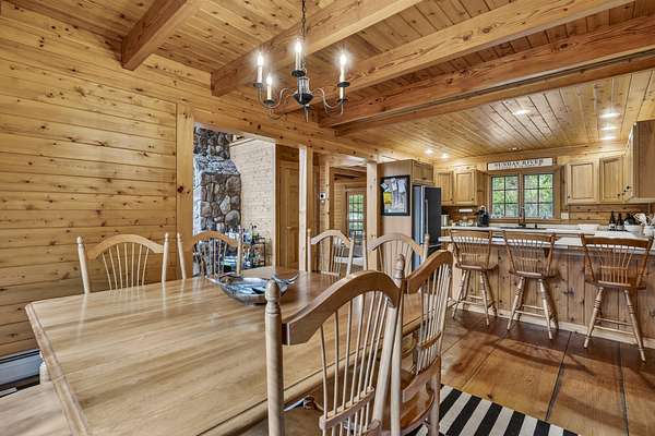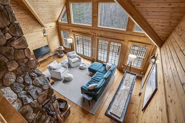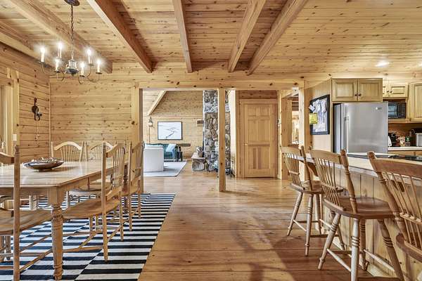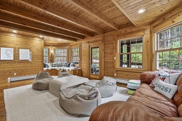 A timeless Maine retreat, reimagined for elevated mountain living. Privately set on a serene, wooded lot just minutes from Sunday River, this exceptional cabin offers the rare balance of seclusion, sophistication, and effortless access to the area's premier four-season amenities. Thoughtfully designed for both grand entertaining and intimate gatherings, the home features four bedrooms, including two elegant en suites, and a stunning great room filled with natural light and architectural warmth. A secondary living area and screened porch on the main level provide refined spaces to unwind, while seamlessly extending the home's inviting atmosphere. The lower level transforms into a private retreat of its own--complete with a game room, bar, media lounge, and additional accommodations--creating an ideal setting for hosting guests in comfort and style. Outdoors, an expansive deck overlooks a tranquil, private setting where a hot tub and fire pit define the ultimate après-ski experience. Whether returning from the slopes or an evening at The Matterhorn Ski Bar, this home invites relaxation at every turn. An attached two-car garage, well-appointed mudroom with integrated laundry, and a whole-house generator ensure convenience without compromise. With ITS trail access just up the street and the vibrant offerings of the Bethel area close at hand, this turnkey residence represents a rare opportunity to own a legacy property--crafted for comfort, connection, and enduring memories.