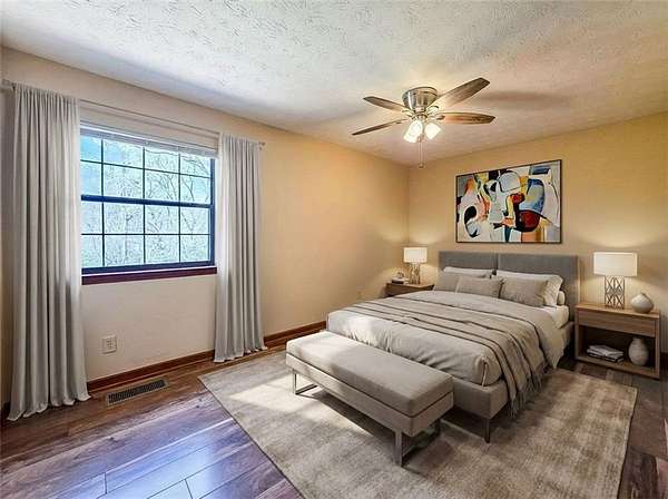 Est $1,648/moHuge Yard; About 1.58 Acres with Fenced Area Plus Additional Open Area; Tri-Level Oversized Deck; Great for Entertaining; 3 Total Garage Spaces with both Attached and Detached Garage; Electric Garage Openers for Both; Primary Bedroom can be considered on the main or below depending on preference; Gorgeous Flooring! Updated; Two Living Areas with the Fireplace in the Living Area Below; SF found in two locations as 2198 and then 1798; Very Private Lot with Wooded area behind as part of acreage and back line would be middle of creek way behind; Dining Room; Large Bonus Room adjoining mud room/utility room/ room with where the washer and dryer hook up is.