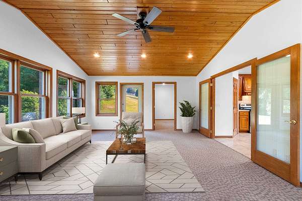 Discover endless possibilities in this 1-owner, all-brick wk-out ranch w/4,200+ sqft nestled on 2.3 scenic acres along the Fox River. Enjoy the perfect blend of privacy & recreation w/wooded backdrop & water access in front-plus space to add a dock. Home features 6 spacious bdrms & 6 baths, stunning river views, & natural light throughout. The sunroom offers a fireplace & access to the priv backyard. Mn level includes a generous kitchen w/walk-in pantry, office lvng rm & 3 bdrms-2 w/priv en-suites. Ample storage & wk-in closets throughout. Elevator to wk-out LL offers rec rm, billiards area, 3 bds & full bath. Step outside & enjoy seamless connection to nature & water. Whether you plan to renovate or reimagine, this is your chance to create a waterfront dream. Some photos virtually staged.