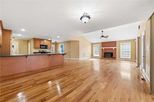 Welcome to this beautifully built 4-bedroom, 3-bath custom brick home nestled on 2.35 private acres with peaceful views of Kirkpatrick Lake. Built in 2006, this home offers solid craftsmanship, functional living space, and a serene natural setting. The four-sided brick exterior delivers timeless curb appeal and low-maintenance durability, while the long driveway and wooded surroundings create a true retreat feel. Inside, you will find freshly painted interiors, hardwood flooring, and a spacious living room anchored by a wood-burning brick fireplace. Natural light pours in through large windows and a sliding glass door that opens to outdoor living areas overlooking the lake. The kitchen features warm wood cabinetry, ample counter space, a breakfast area, a brand-new stove, and a newer microwave. Its layout allows for easy everyday living and entertaining. The oversized primary suite is connected to the screened porch and includes a jetted, heated tub, separate shower, and tranquil backyard views. Three additional bedrooms offer flexibility for guests, office space, or growing needs. Upstairs, the oversized bonus room provides incredible versatility. With built-in storage and plumbing already stubbed for a future full bath, this space could easily function as a private guest suite, media room, teen retreat, or home office. Outdoor living is where this property truly stands out. Enjoy both a screened porch and an open covered porch with views of Kirkpatrick Lake. The expansive brick patio is ideal for entertaining, grilling, or simply relaxing while taking in the peaceful setting. With 2.35 acres, there is ample room for gardening, recreation, or enjoying nature in privacy. Located approximately 15 minutes northwest of Cedartown and less than 10 minutes from the charming community of Cave Spring, this home offers the best of quiet country living with convenient access to local dining, shopping, schools, and outdoor recreation. Cave Spring is known for its historic downtown, natural springs, Rolater Park, and small-town charm, while Cedartown provides additional retail, medical facilities, and everyday conveniences. If you are looking for space, privacy, lake views, and quality construction - all within easy reach of town - this property delivers.