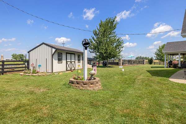 Charming home situated on 5 acres surrounded by gently rolling farmland. This five bedroom home is a quiet country oasis away from the hustle and noise. Come watch the world go by from your covered front porch, or take in the sunsets from the covered back porch while overlooking your in ground pool. Enjoy tinkering in the expansive workshop, or use it for additional parking for your equipment/boat, etc. Come enjoy quiet country living, just outside of town with easy access to Harrodsburg, Frankfort, and surrounding communities. Unrestricted, you can start your homestead, bring your animals or purchase the additional farmland available and grow your farming operation.