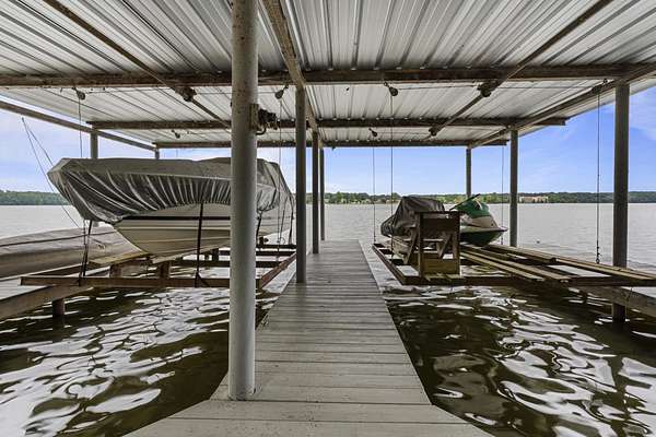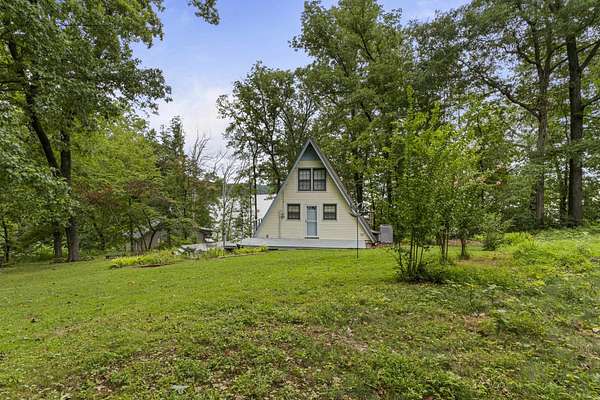 Charming Retreat on TWO Waterfront Lots with YEAR ROUND, DEEP WATER, and Boathouse! Escape to your own private lakeside paradise with this cozy A-frame home nestled on two spacious, waterfront lots offering year-round, deep water access. This unique property is perfect for a relaxing weekend getaway, a summer retreat, or even full-time living. Enjoy stunning views and direct water access from your very own boathouse, complete with two boat slips, an upper sun deck, electricity, water hookup, and dedicated storage for all your water gear.The property also features a 30' x 24' detached garage/workshop with two roll-up doors, including a high bay~ideal for boat or RV storage, hobby work, or lake toys. With power already connected, it's a versatile space ready for your needs. Don't miss your chance to own this Gem!