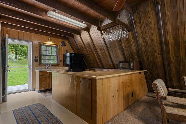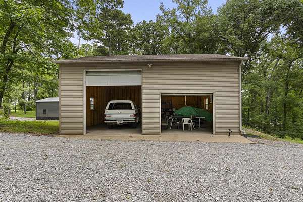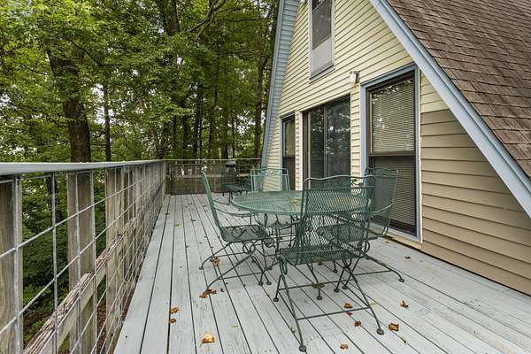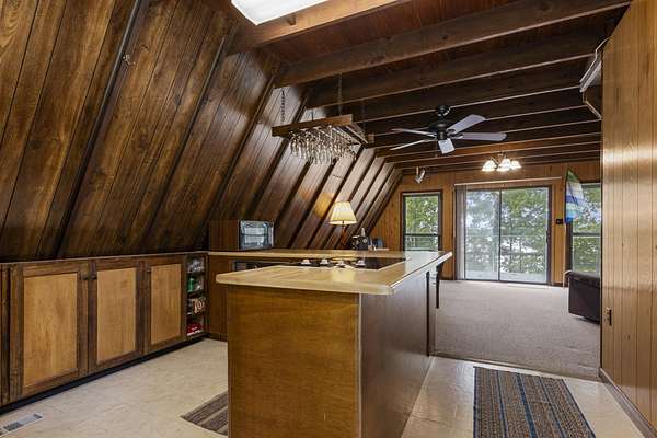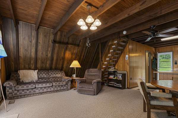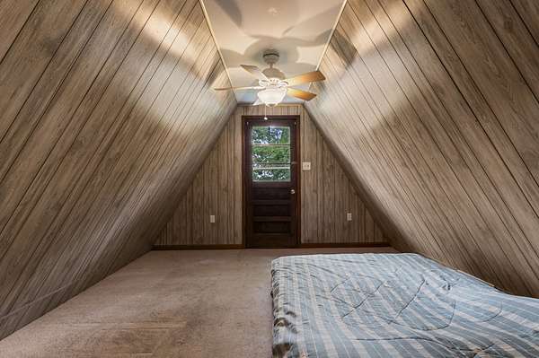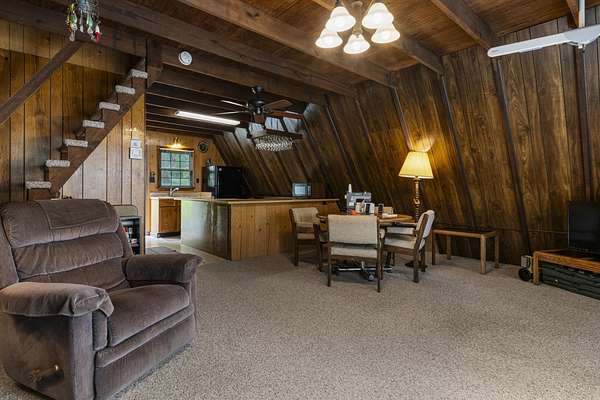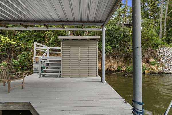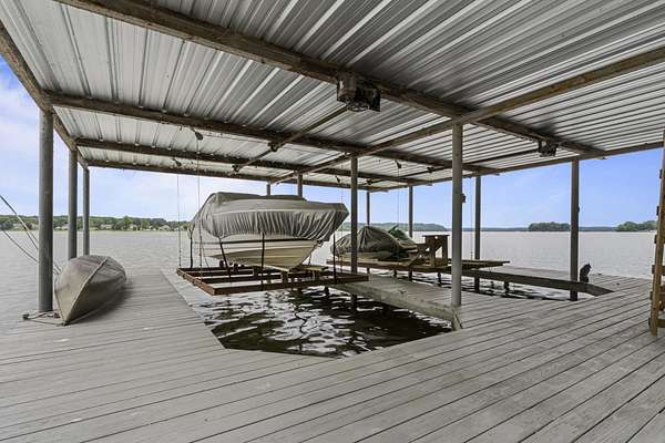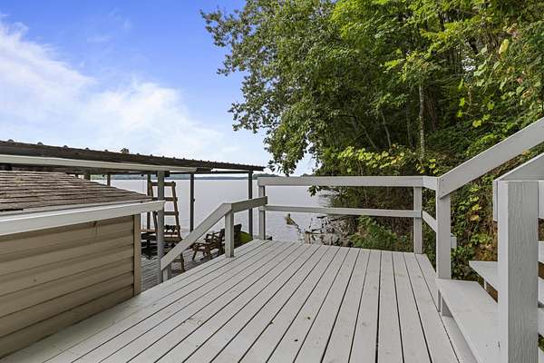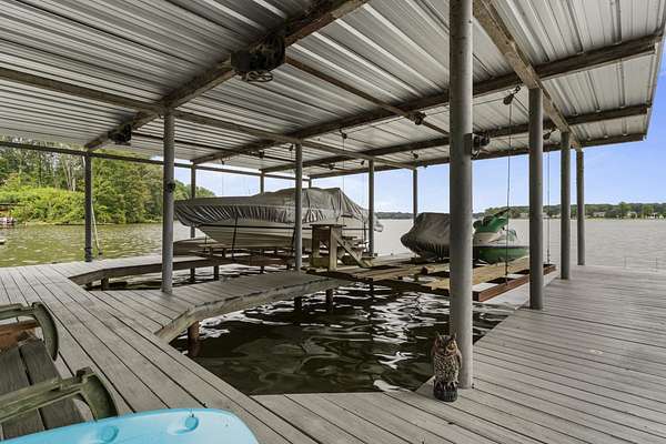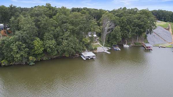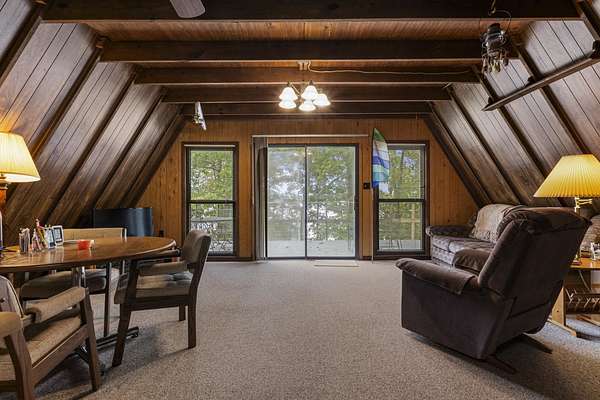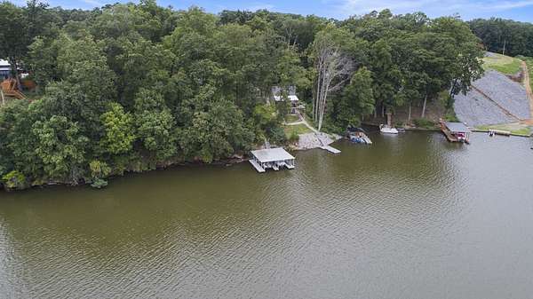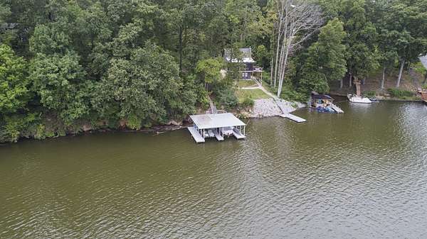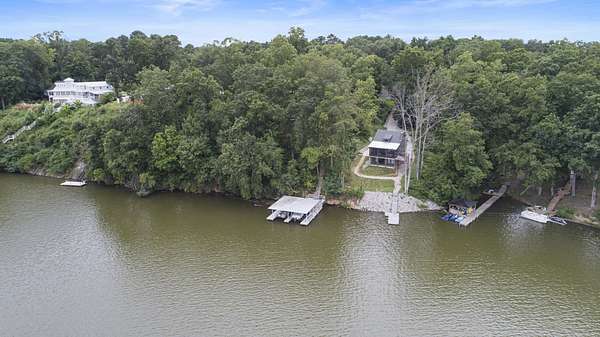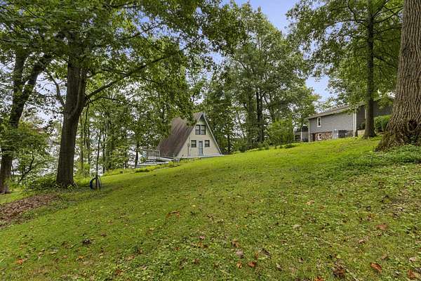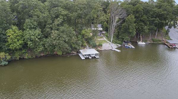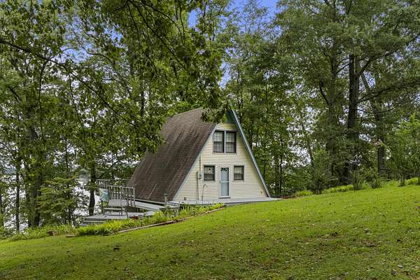 Charming Retreat on TWO Waterfront Lots with YEAR ROUND, DEEP WATER, and Boathouse! Escape to your own private lakeside paradise with this cozy A-frame home nestled on two spacious, waterfront lots offering year-round, deep water access. This unique property is perfect for a relaxing weekend getaway, a summer retreat, or even full-time living. Enjoy stunning views and direct water access from your very own boathouse, complete with two boat slips, an upper sun deck, electricity, water hookup, and dedicated storage for all your water gear.The property also features a 30' x 24' detached garage/workshop with two roll-up doors, including a high bay~ideal for boat or RV storage, hobby work, or lake toys. With power already connected, it's a versatile space ready for your needs. Don't miss your chance to own this Gem!