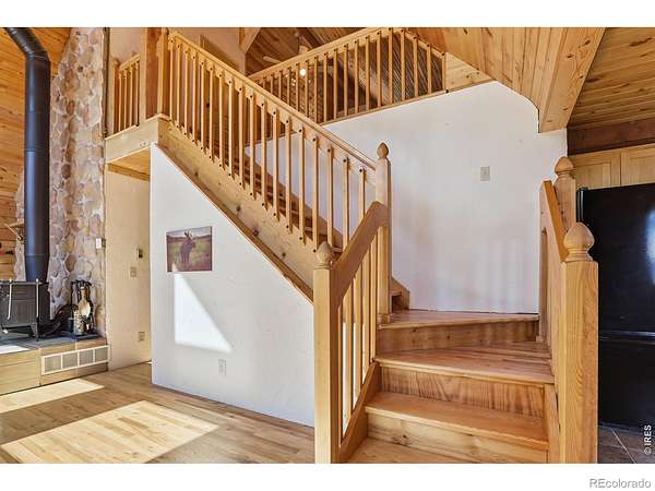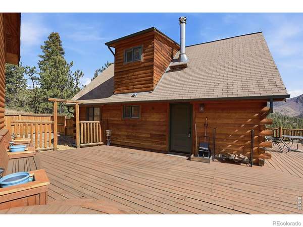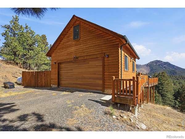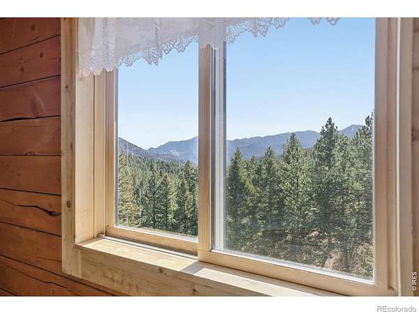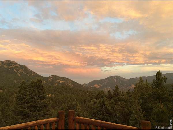Whispering Pines Cabin. Perched on Flagstaff Mountain with far-reaching, unobstructed views, this inviting log cabin retreat blends timeless mountain character with thoughtful updates and exceptional privacy. Tucked at the quiet end of the road, the setting offers rare serenity, abundant wildlife, and the true feeling of Colorado mountain living, just 10 miles from Baseline & Broadway in Boulder. Inside, a dramatic vaulted great room anchors the home, centered around a classic Vermont Castings wood stove that creates a warm gathering space framed by expansive windows and breathtaking scenery. Refinished solid red oak floors add warmth and elegance throughout the main level, while new ProVia steel entry doors enhance both style and durability. Designed for indoor-outdoor living, the home opens to a large wraparound deck capturing sweeping mountain views. Deer and wild turkeys are frequent visitors, adding to the sense of quiet mountain retreat. The main level offers two comfortable bedrooms, while the upper loft provides exceptional flexibility as guest quarters, a home office, or creative space, complete with a full bath and Mitsubishi ductless mini-split for cooling and additional heating. The kitchen features a charming Juliet balcony that brings in fresh mountain air and views. The unfinished walkout basement offers excellent potential for future expansion, while the workshop beneath the garage creates an ideal space for hobbies or storage. Additional highlights include a 95% efficient furnace (2017), Bradford White 40-gallon water heater, 18-watt whole-house generator, reinforced garage door, and triple-pane south-facing windows for efficiency and comfort. Outdoor enthusiasts will appreciate three nearby trailheads for hiking, biking, and horseback riding, while Gross Reservoir-just three miles away-offers fishing and non-motorized boating.A rare opportunity to own a classic Colorado log cabin with extraordinary views, privacy, and convenient access to Boulder.