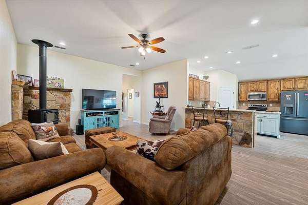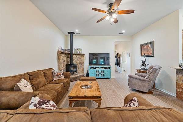 Situated in the Cowboy Capital of the World, this beautifully maintained 3 bedroom, 2 bath home sits on ten acres of sandy loam soil that is ideal for horses and livestock. The property is thoughtfully designed for equestrian living with a competition size arena featuring top rail pipe, multiple covered turnouts with water, and secure fencing around the entire property.