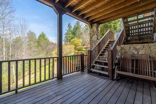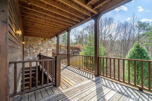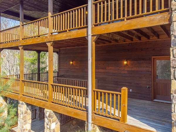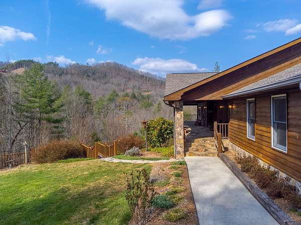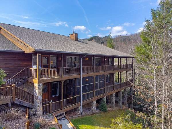 Custom home w/ 3 bedrooms, 4 baths, 4 bonus rooms in a gated, paved community w/ easy access, ideally located near Fontana Lake, Tsali Recreation Area, the Nantahala River & Bryson City! Perfect for large families or entertaining, this spacious home offers multiple living areas & flexible sleeping space. The main level features a great room w/ a stone gas fireplace, open to the dining area & a well-appointed kitchen w/ ample cabinet & counter space, island w/ breakfast bar & walk-in pantry. The primary suite includes a walk-in closet & ensuite bath w/ dual vanities, jetted tub & separate shower. A guest bedroom w/ ensuite bath is located near the laundry. The full basement includes a large family room, craft room, third bedroom, full bath & two bonus rooms. The sub-basement adds another great room, two bonus rooms & full bath w/ exterior access. Enjoy two levels of wraparound covered porches, including a screened lower level, plus oversized 3-car garage, Generac generator, flat yard, fenced pet area, garden beds, apple trees & blueberry & raspberry bushes, This home has the space for all your friends & family to enjoy while you are exploring the abundant outdoor attractions!