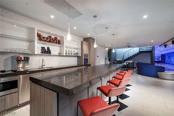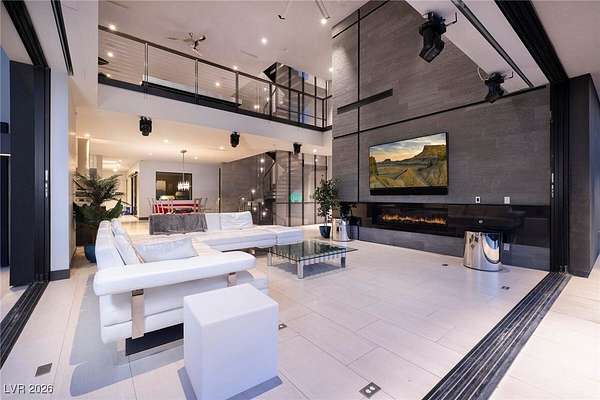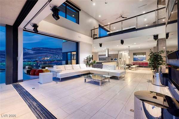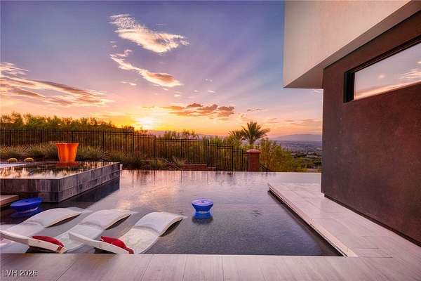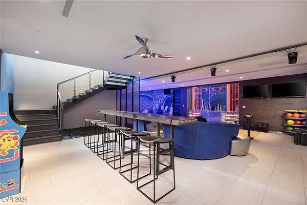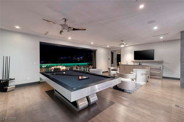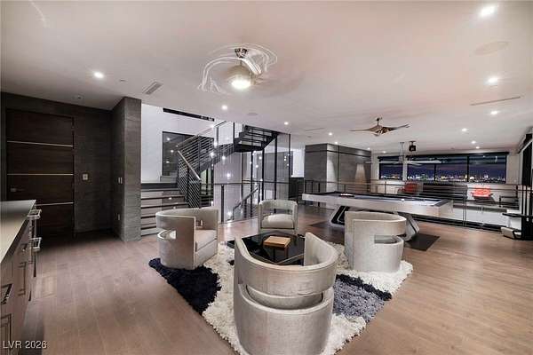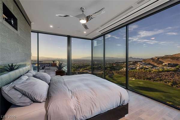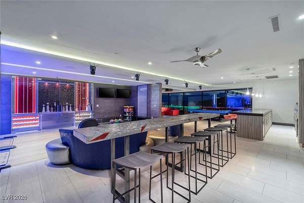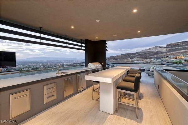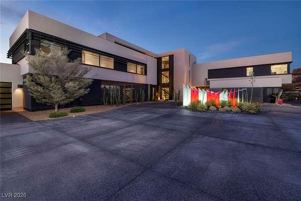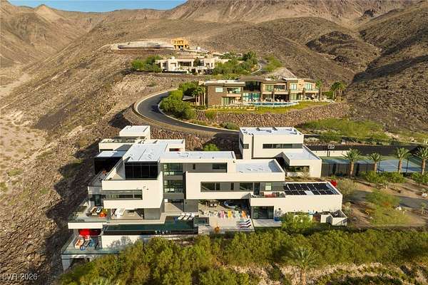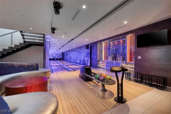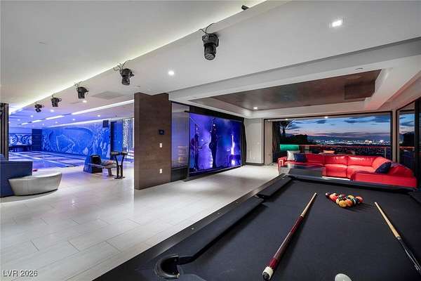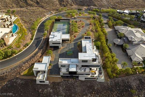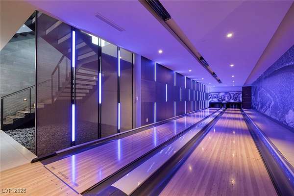 Welcome to an unparalleled fully furnished private oasis in MacDonald Highlands' guard-gated community. This luxurious residence redefines opulence, offering privacy, sophistication, and entertainment. With three security gates, this exclusive enclave ensures peace of mind. A masterpiece rests on a 2.2-acre estate, designed for discerning connoisseurs. Inside, panoramic Strip views greet you through vast windows, enhancing the grandeur. An indoor basketball court, private bowling alley, and gym cater to recreation and fitness. Outdoors, a pool, spa, patios, and fire pits provide relaxation. The chef's kitchen, guest house, bars, tennis court, and theater room transform this estate into a private resort. With over 15,000 sq ft, 7 bedrooms, and 11 baths, it epitomizes luxury. Meticulous details exceed expectations, presenting the pinnacle of modern living where vistas, amenities, and exclusivity converge.
