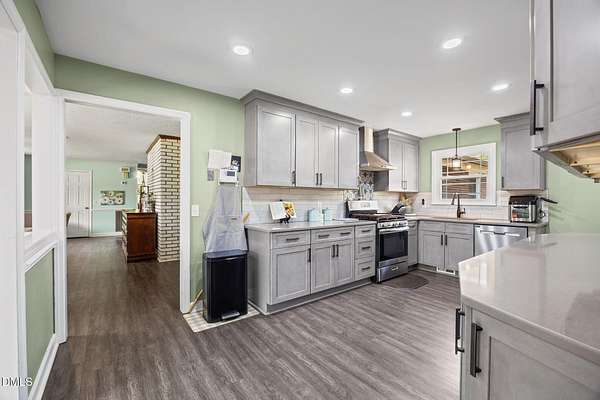 Set on over two acres, this 4-bedroom, 3-bathroom property offers a rare balance of privacy and convenience--tucked away in a peaceful setting while still within easy reach of both Raleigh and Wilmington! Whether you're heading into the city or planning a beach day, you're perfectly positioned to enjoy the best of both worlds. The outdoor spaces are designed for both relaxation and entertaining, featuring a covered front porch, three rear decks, a spacious patio, and a rear pavilion complete with a hot tub--ideal for hosting or unwinding in your own private retreat. The expansive grounds provide ample room for gatherings, with additional flexibility offered by a nearby outbuilding that's perfect for larger dinner parties or events. A private fishing pond adds to the tranquil atmosphere, creating the perfect backdrop for quiet mornings or evenings. Inside, the finished basement opens the door to endless possibilities, highlighted by a standout bourbon room that adds a unique and memorable touch to the home!