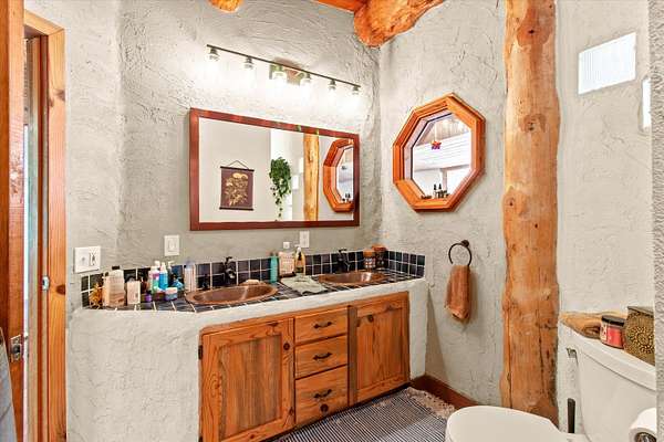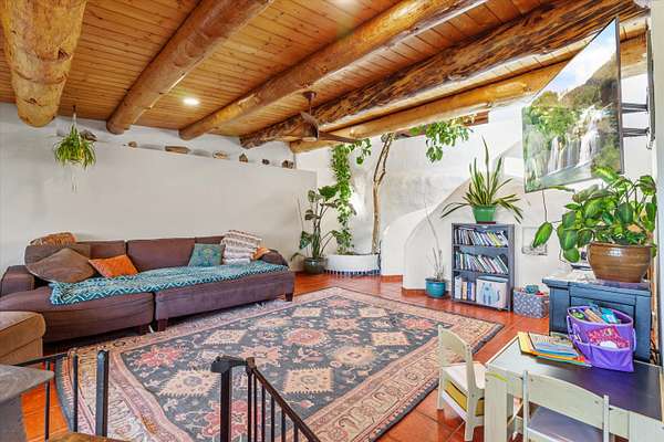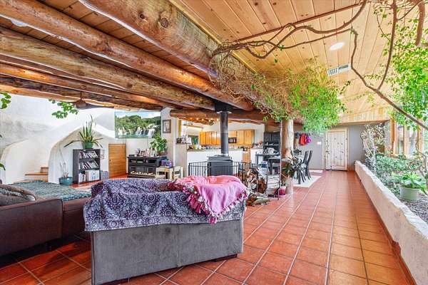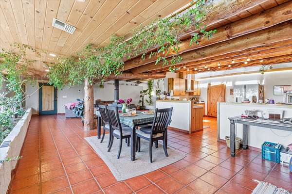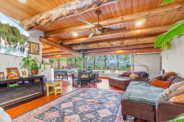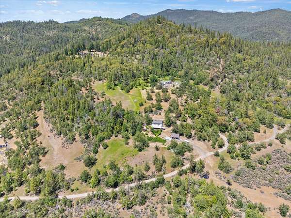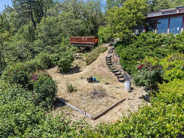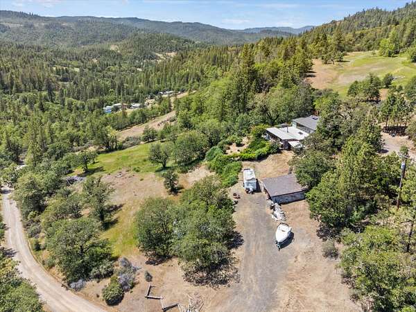One of a kind earth ship, tucked away on 5 private acres. This 2-bed, 1-bath home offers over 2,800 sq. ft. of charm and comfort. Enjoy breathtaking Cascade views, an open floor plan, and vaulted log beam ceilings. Recent upgrades include LVP flooring (2021) and a remodeled bathroom- including a river rock shower bed. The kitchen features blue pine cabinetry, tons of storage, and a spacious walk-in pantry. Super-insulated with 3-ft thick walls and skyscraper glass, the home stays the perfect temp with central A/C and heating. High-yield well (100+ GPM at drilling), septic system, and thriving indoor plants. Take in the views from the deck, or included hot tub!This unique home is truly one of a kind and would make the perfect secluded- yet convenient to town- retreat. With close proximity to Crater lake and the Rogue River it could be a wonderful ''Airbnb'' investment property. This home is a must see- pictures just can't do it justice.