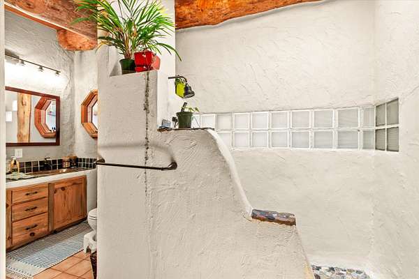 - Ceiling Fan(s), Double Vanity, Open Floorplan, Pantry, Tile Counters, Tile Shower