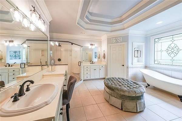 - Bookcases, Central Vacuum, Crown Molding, Double Vanity, Entrance Foyer, Entrance Foyer 2 Story, High Ceilings 10 ft Main, High Speed Internet, His and Hers Closets, Recessed Lighting, Tray Ceiling(s), Walk-In Closet(s)