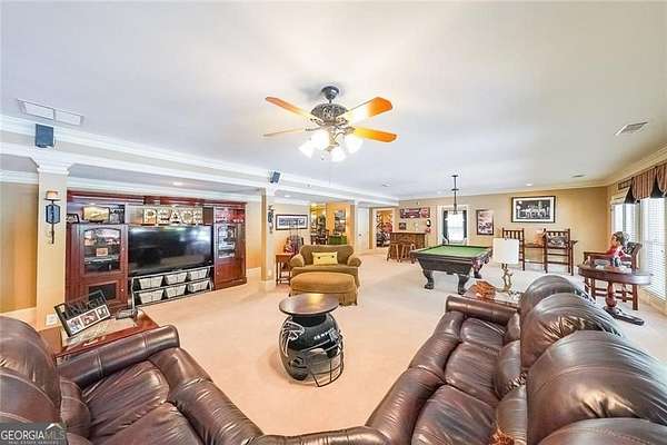 You can have it all! An Exquisite 7.27 Acre Private and Secluded Gated Estate located just 30 minutes from Downtown Atlanta and Minutes to Shopping and Dining. This home is an Entertainers Paradise! Perfect for Multi Generational Living, This Immaculate Stunner is Truly two Homes in One! Main Level Boasts Enormous Great Room with Bookcases and Fireplace, Separate Dining, Office, Impressive Kitchen includes Walk in Pantry, Wall oven AND Range, Icemaker and Vaulted Keeping Room with Fireplace. Owners Suite With Spa Style bath with Separate Vanities, Soaking Tub and Enormous Shower, Two Walk in Closets with Closet Storage Systems and Separate Sitting/Sunroom. Upper Level includes Bedroom Suite with Living Area, Full Bath, and Walk in Closet and Two Walk in attic Storage Area's. The IMPRESSIVE Terrace Level Offers an Open Concept Living/Dining/Pool Table Room, Exercise Room, FULL KITCHEN, Second Laundry Room, Two Bedroom Suites (Each with a full Bath and Walk in Closets) Half Bath, Darts Room, and Unfinished Flex Space. Outdoor Living Spaces Include a Covered Front Porch, Gigantic Screened Porch and Deck off Main Level, and Covered Porch off Terrace Level. The Majestic Backyard has an Inviting Heated Salt Water Pebble Tec Pool/Spa. Pool even has Upgraded Technology which can be Controlled from Your Phone! Aside from the 3 car garage with the main house, the detached 3 car garage is heated and cooled and is perfect for your "Cool Cars"!!! In addition, a 4 bay "Barn" (25x50) for all your other toys or to use for a home business. Also included is the Covered Awning (24x50) For your Motorhome/Boat with a 50amp hookup. The list of upgrades is EXTENSIVE, Custom Trim, Hardwoods, Upgraded Appliances, Irrigation , Plantation Shutters, Professional Landscaping and MORE! You have to see to appreciate! NEW ROOF JUST INSTALLED MAY 2025!!!
