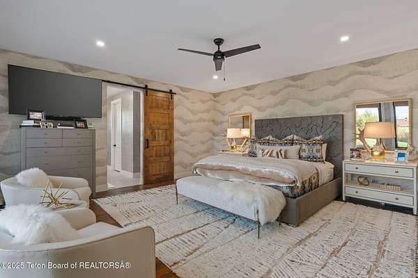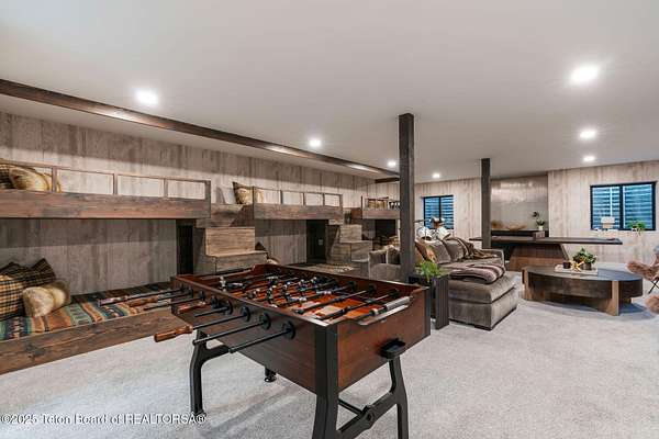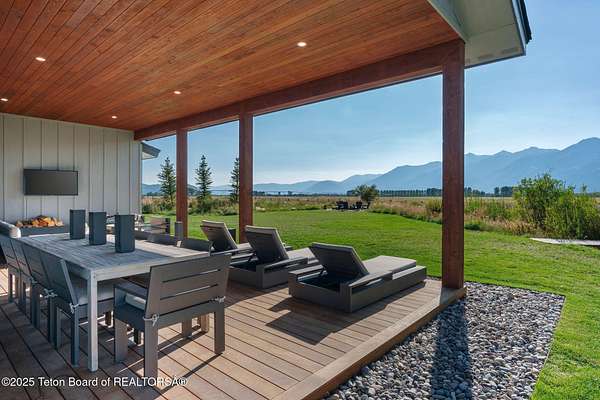 Experience the allure of mountain living in this stunning, custom designed home nestled on 2.25 acres in the picturesque Teton Meadow neighborhood. This remarkable property offers breathtaking vistas as it overlooks the 249-acre Trinity Ranch, a protected area under a permanent conservation easement, ensuring the preservation of its scenic views and wildlife migration paths. Spanning 4,159 square feet, this residence seamlessly combines elegance and practicality. With 4 bedrooms, 5 full bathrooms, on one living level, and an additional lower level bonus room w/ SIX custom bunk beds, there is abundant space for both relaxation and entertainment. Relax on the expansive covered deck or in the backyard. Most of the custom furnishings will convey with the sale of the property.
