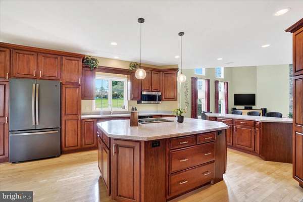 Welcome to 750 Rydell Drive-an exceptional, one-owner custom-built estate offering over 4,600 square feet of elevated living, gracefully set on 1.75 acres of stunning, panoramic views in the highly sought-after Dallastown School District. Where breathtaking panoramic views and timeless custom craftsmanship come together to create a home that is as peaceful as it is impressive. Privately nestled along an exclusive 7-home road leading to a quiet cul-de-sac, this residence offers a rare blend of serenity, privacy, and prestige. With minimal traffic and a peaceful setting, this is where luxury meets tranquility-creating a truly special place to call home. The setting is nothing short of captivating. Surrounded by immaculately maintained landscaping, every angle of this property offers a view that feels like a retreat. Imagine starting your mornings with a cup of coffee as the sun rises over the rolling landscape and ending your evenings with uninterrupted sunset views that feel like your own private masterpiece. Step inside and you are immediately greeted by a grand two-story foyer, setting the tone for the elegance and scale carried throughout the home. Just beyond, the two-story great room makes a statement of its own, filled with natural light and anchored by a stunning fireplace, offering both warmth and sophistication. At the front of the home, just off the foyer, you'll find a private, oversized home office-perfectly positioned to offer quiet focus while still maintaining convenient access to the rest of the home. Featuring beautiful custom built-ins, this space is ideal for working from home, running a business, or creating a refined library or study. The true centerpiece of the home is the luxury kitchen-designed to impress and built to gather. Featuring two expansive center islands, this space offers an incredible amount of workspace and seating, making it ideal for everything from casual mornings to large-scale entertaining. Outfitted with double ovens, abundant cabinetry, and high-end finishes, the kitchen delivers both function and style at the highest level. What truly sets this home apart is the seamless flow of its main living spaces. The formal dining room transitions effortlessly into a light-filled sunroom, creating an elegant yet inviting setting for both everyday living and special occasions. This entire space remains open to the kitchen, allowing for uninterrupted sightlines and connection-perfect for hosting while still feeling warm and intimate. All of this is thoughtfully positioned adjacent to the stunning two-story foyer, enhancing the home's architectural presence and creating a layout that feels both grand and welcoming. Every space has been carefully designed to balance openness, comfort, and elevated living. Upstairs, the home continues to impress with generously sized bedrooms and a layout that offers both privacy and functionality. The primary suite is a true private retreat, offering expansive space, a peaceful sitting area, and a beautiful fireplace that adds warmth, charm, and a touch of everyday luxury. The spa-like bath and spacious walk-in closet complete this inviting and refined space. The lower level presents yet another opportunity to expand your living experience. The basement is already prepped and ready, offering a blank canvas for your vision-whether it's a home theater, fitness area, additional living quarters, or the ultimate entertainment space. Outside offers plenty of room to park your camper, boats, or work trailers, along with an extra-large three-car garage offering nearly 1,000 square feet-perfect for storage, hobbies, or additional workspace. With its commanding presence, exceptional layout, private setting, and breathtaking views from every direction, this home offers a lifestyle that is both elevated and deeply comfortable. From quiet mornings to unforgettable gatherings, 750 Rydell Drive is a place where luxury is not just seen-but experienced.