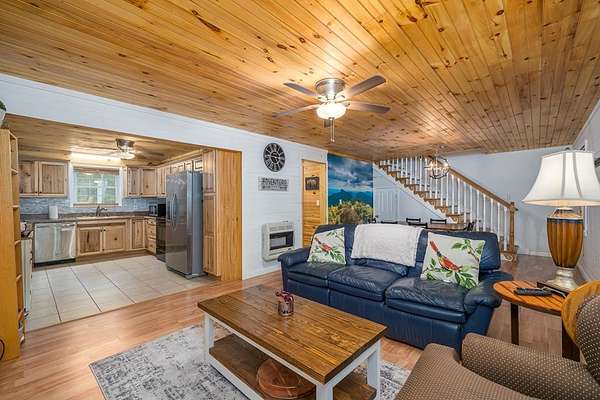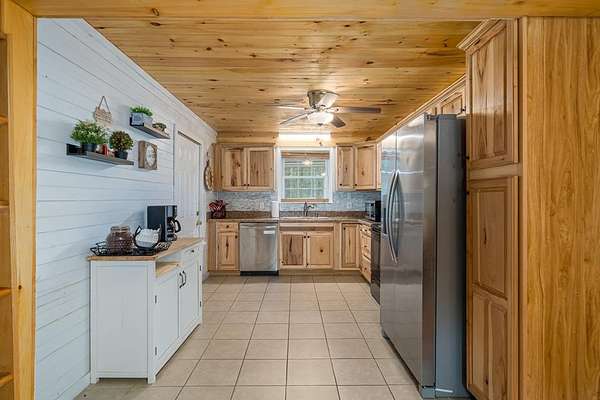 Charming Furnished Cabin Retreat on 4.82 Acres -- Private, Peaceful, and Fully Equipped. This beautifully furnished 2-bedroom, 2-bathroom cabin, with a large sleeping loft is nestled on a secluded 4.82-acres. Step inside to warm wood floors throughout and a stylish mix of wood and sheetrock finishes that create a cozy atmosphere. Large living room with plenty of space for entertainment or relaxing. Kitchen is a chef's delight, complete with stainless steel appliances and plenty of room for creating the perfect meal and has a coffee bar. Large Main bedroom and laundry on main level. Large Versatile Bonus Room/Sun room also on main level, currently being used as a game room, reading nook, and sitting area. Upstairs you'll find a spacious sleeping loft, perfect for extra guests. Large second bedroom and bathroom also upstairs. Step outside and unwind in the luxurious Jacuzzi under a covered pergola, or gather around the nearby fire pit area for evening conversations under the stars. With 4.82 acres surrounded by serene woodland views, this home and outdoor space is perfect for relaxing, entertaining, trail walking, exploring or simply soaking in the peace and privacy of your surroundings. Whether you're sipping your morning coffee on the porch or enjoying a cozy night by the fire, this property offers the ultimate in seclusion and relaxation.