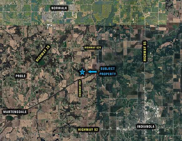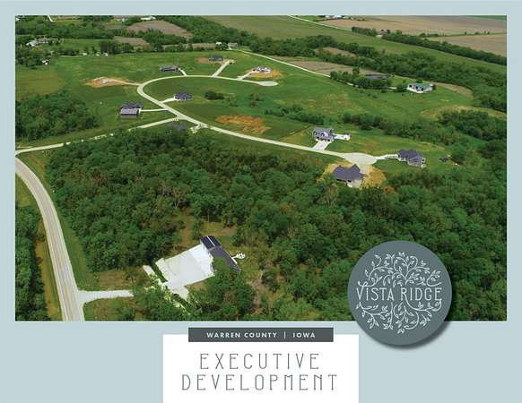 Vista Ridge features an executive development by Ground Breaker Homes located S of Norwalk, IA, off of Highway R57 with easy access to the DM Metro and great views overlooking Middle River Valley. Plat 1 consists of 4 lots with shared drive access directly off of the highway, ranging from 2.6 acres to 3.3 acres in size, and the choice of open space with a view or secluded timber. Plat 2 rolls into the heart of the property with a total of 15 additional lots ranging from 2 acres to 7 acres in size, timber and open space views of Middle River Valley, 2 cul-de-sacs, and a variety of different lot types to choose from. Vista Ridge has everything someone looking to build their dream home would desire with access to rural water, natural gas, and electricity on site. Large executive lots within the Indianola School District with amazing views of the Warren Co countryside. Looking to live in a neighborhood, yet have components of rural living? Covenants allow outbuildings and some animals!
