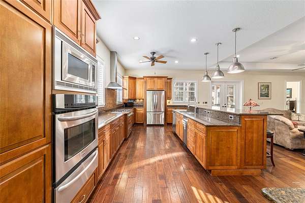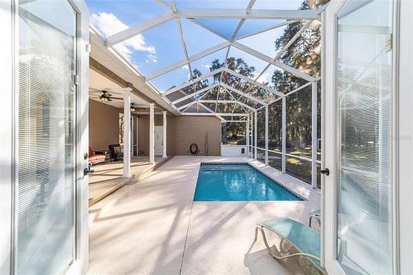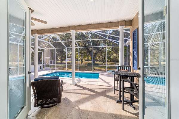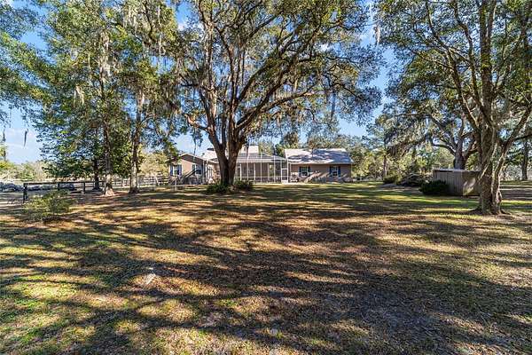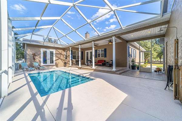 Tucked away on a quiet dead-end road between established private farms, this thoughtfully designed 5.81 acre property offers privacy and timeless Florida charm. Perimeter fenced with an automatic gated entrance, the property is shaded by live oak trees and designed for both comfortable living and versatile use. At the heart of the property is a custom-designed 2-bedroom, 2-bath pool home featuring a dedicated office, ideal for remote work, creative pursuits, or use as a 3rd bedroom. The home boasts ample storage and includes a bonus room flooded with natural light that can accommodate a variety of needs. An oversized three-car garage and workshop provide ample space for vehicles, equipment, and hobbies and a whole house generator ensures that your activities are never interrupted by a power-outage. The inviting farmhouse-style front porch sets the tone--perfect for morning coffee while taking in peaceful views of neighboring pastures and daily equestrian training routines nearby. A separate guest house adds exceptional flexibility, offering a private, 450 sq. ft. studio apartment for family or guests, along with a two-bay, air-conditioned workshop--well suited for storage, projects, or climate-controlled workspace needs. Conveniently located just 4.5 miles from the HITS Show Grounds and approximately 14 miles from the World Equestrian Center, the property also provides easy access to numerous equestrian venues while maintaining a tranquil, country setting. Whether you're seeking a private retreat, a functional mini-farm, or a property that balances rural serenity with proximity to Ocala's renowned amenities, this offering delivers versatility, comfort, and location in equal measure. New Roof on Main Home and Guest Home in 2025. Exterior Paint on both homes 2025.