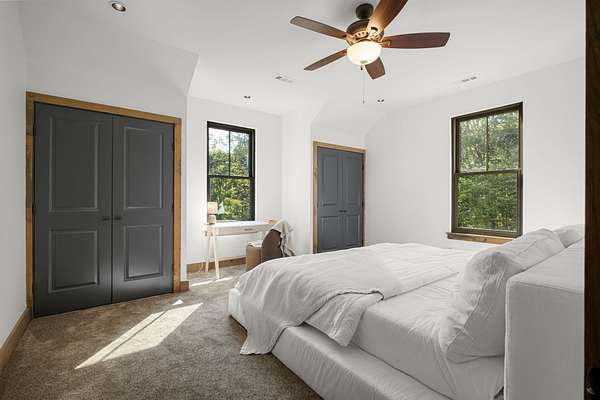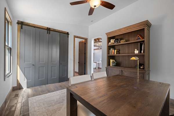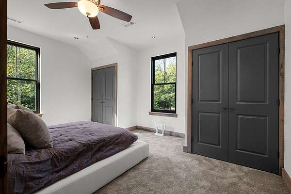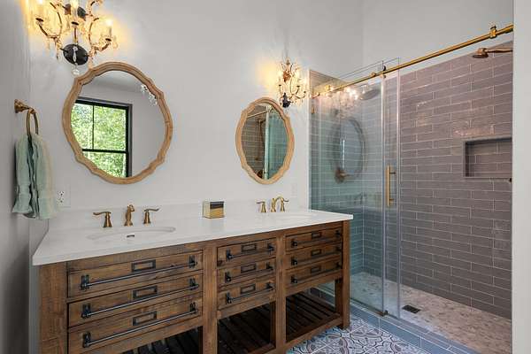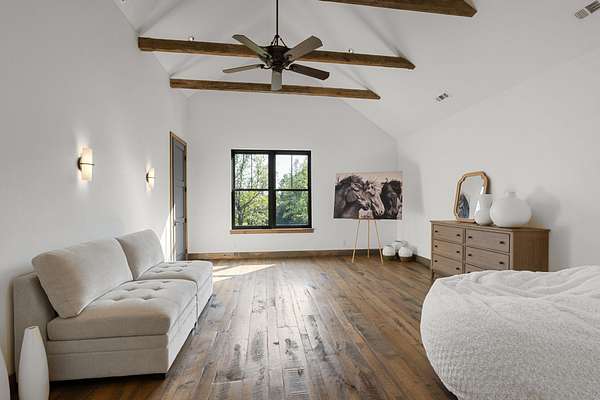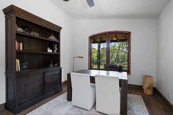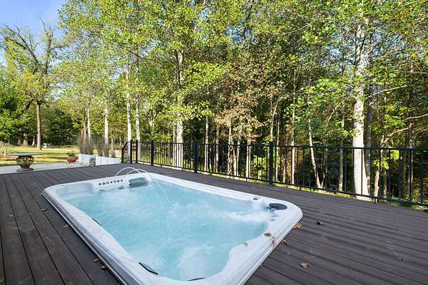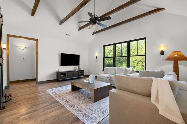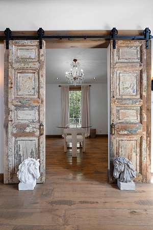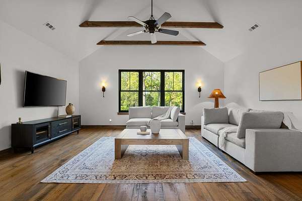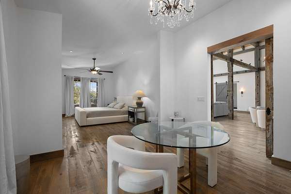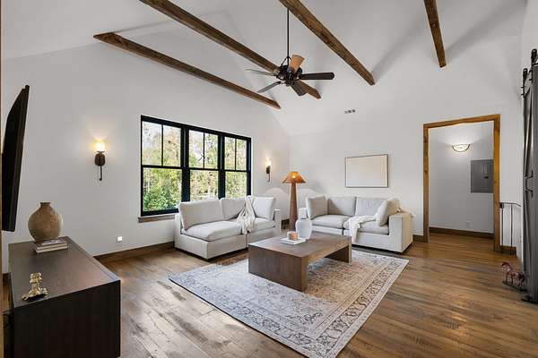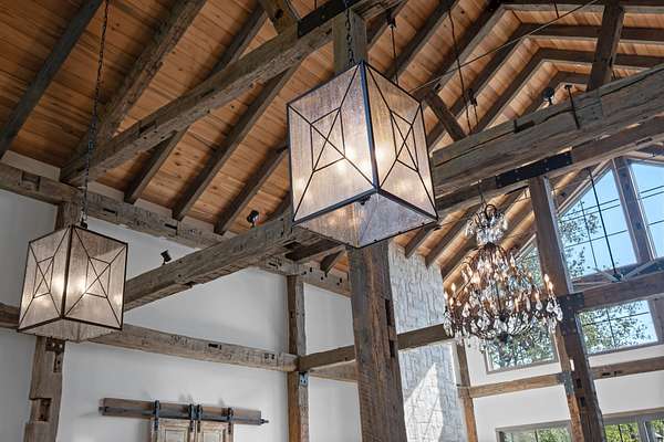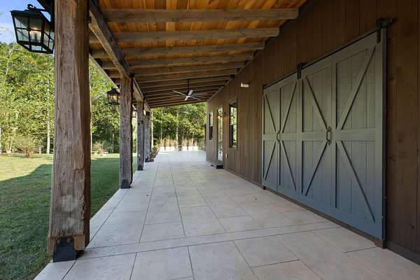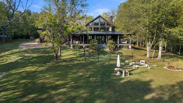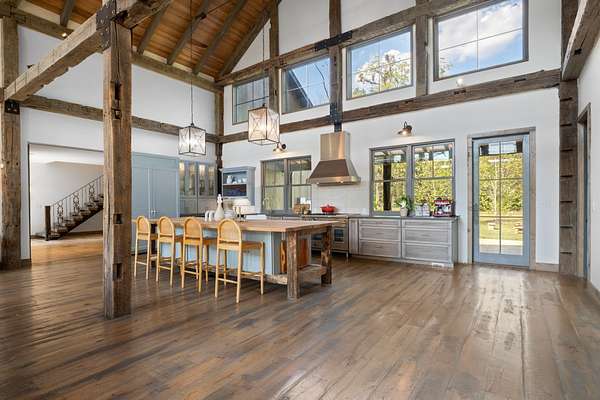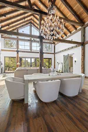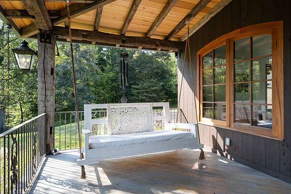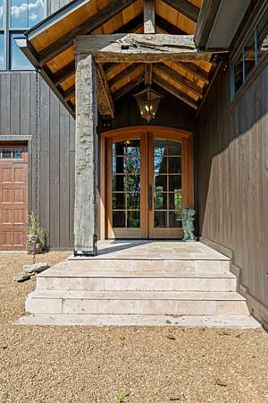 Thoughtfully priced below past appraisal. Here, on seven peaceful acres, this 5,371 square foot luxury home offers a place where comfort and elegance naturally meet the calm of nature. Inside, the great room rises with dramatic presence with 28 foot ceilings, 150 year old Montana timber beams, and sunlight spilling in from every angle. It is a space made for celebration and connection, yet equally perfect for quiet mornings beside the fire as the day slowly begins. The chef’s kitchen invites gathering, with Bertazzoni appliances, generous workspace, and an adjoining scullery that keeps hosting effortless when friends and family fill the home. Every element works together so you can enjoy being present in the moment. The main-level primary suite becomes a personal retreat framed by historic Indian teak doors. A spa style bath offers the perfect place to unwind, while a second bedroom nearby creates flexibility for guests or a dedicated office. Follow the graceful French Quarter inspired staircase to the upper level, where three additional bedrooms, including a secondary suite, provide comfort and privacy. A bright studio space offers endless possibility a creative haven, home gym, lounge, or an extra bedroom for the growing household. Outdoor living becomes part of everyday life here. Over 1,500 square feet of porches and terraces overlook gentle woods and soft evening skies. Enjoy morning coffee surrounded by nature or step into the swim spa under a blanket of stars this home encourages you to slow down and savor the setting. Every detail reflects thoughtful design and timeless style, making this residence a place that feels warm, refined, and unmistakably special. A home built for living well.
