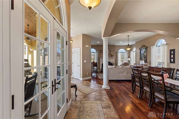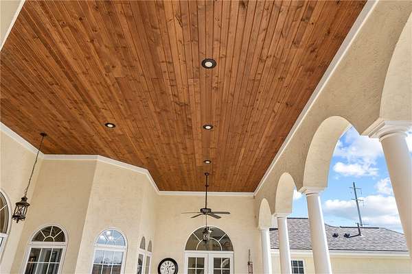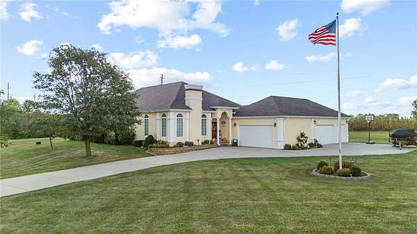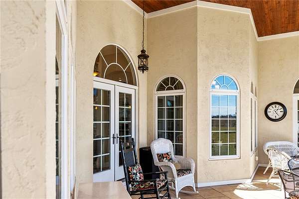 Don’t miss this stunning 3-bedroom / 2-bath Custom-Designed Florida Mediterranean retreat set on 3 Private Acres, including over an acre of Wooded serenity. Designed for seamless Indoor-Outdoor living, the home features a 600+ sq ft Covered Patio, a Handcrafted 5-foot front door, and multiple Double-Door Entries and 19 Floor-to-Ceiling Windows that flood the space with Natural Light. Quality Craftsmanship and Attention to Detail define the interior details with Brazilian Cherry Hardwood Floors, Rounded Bullnose Corners, and Propane Ventless Fireplaces, creating warmth and Architectural Elegance throughout. The gourmet eat-in kitchen offers a Propane Cooktop with Electric Oven, while the luxurious primary suite boasts a fireplace, built-in office area, makeup vanity, Aerofeel Soaking Tub beneath a Gazebo-Style Ceiling, and expansive Walk-in Closet. Car enthusiasts and hobbyists will love the 5-car Garage, including a Workshop with 200-amp service, plus an additional Storage Building. The wooded retreat continues outdoors with a Lighted Treehouse featuring a Climbing Wall, Swing Set, Zip line, and Firepit Area — a truly one-of-a-kind property!