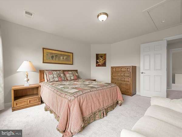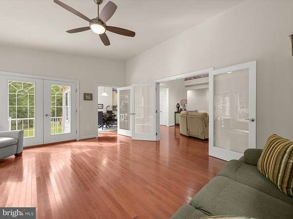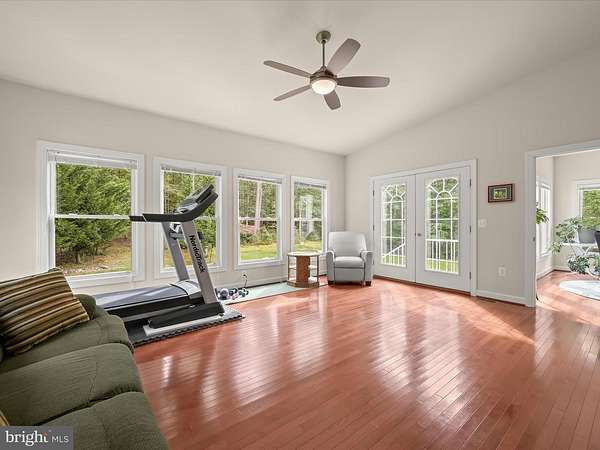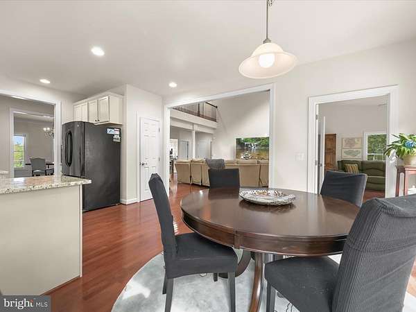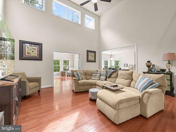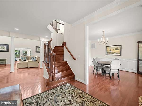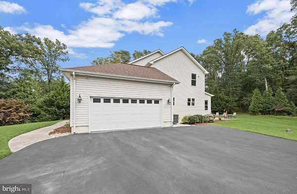 Tucked at the end of a quiet cul-de-sac and set on 1.73 wooded acres, this four-bedroom, three-and-a-half-bath home offers a rare blend of privacy, space, and convenience. With over 4,000 square feet above grade, the main and upper levels are designed for both everyday living and entertaining. A covered front porch leads into a light-filled foyer with elegant moldings, a neutral palette, and hardwood floors throughout the main level. The home features a formal dining room, a dramatic two-story living room with a vaulted ceiling, and a sunroom with peaceful wooded views. The kitchen includes granite countertops, tile backsplash, center island, walk-in pantry, and 42-inch cabinetry, along with a bright breakfast area. A mudroom connects to the oversized two-car garage with abundant storage and a 240-volt EV outlet. The main level primary suite offers a quiet retreat with sound-dampened exterior walls, double windows, and an en-suite bath with heated floors, soaking tub, dual vanity, and walk-in shower with dual heads. Direct access to the laundry room adds everyday convenience. A half bath completes the main level. Upstairs, three spacious bedrooms, two full bathrooms, and a loft-style sitting area provide flexible living space. The finished lower level, completed in 2023, adds over 2,000 square feet of open, versatile space with walk-out access and rough-in plumbing for a future full bath. Outdoor living includes a stamped concrete patio and fire pit surrounded by mature trees, creating a private, natural setting. Recent updates include new carpet (2024), kitchen countertops and backsplash (2024), and an insulated garage door with quiet opener. Additional features include an 80-gallon high-efficiency water heater, dual-zoned HVAC, hardwired security camera system, and storm/security doors. A complete list of updates and features is available in the disclosures. Conveniently located approximately 10-15 minutes from Fort Meade and the National Security Agency, with easy access to I-95 and Route 32 for commuting to Baltimore, Washington, and surrounding areas. Offering a level of space and privacy that is increasingly difficult to find at this price point in surrounding Howard County communities such as Columbia and Ellicott City.