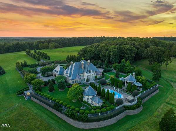 251-acre estate, this extraordinary French Chateau is a rare opportunity that offers breathtaking panoramic vistas. The land itself tells the story. An active solar farm, hay fields, cattle, equestrian facilities, and the potential for a private vineyard make this property genuinely income-producing and fully capable of off-grid living. Whether your vision is a private retreat or agricultural pursuits. This estate provides endless possibilities. The Chateau itself is a masterpiece with handcrafted elegance, bathed in natural light, providing stunning views of the surrounding landscapes. The expansive grounds are beautifully manicured, with hay fields, multiple wells, boiler system, gardens, tranquil ponds, and meandering trails. Private wrought iron gate and fencing, enhance the sense of seclusion, offering peace, privacy, and exclusivity. Blending luxury and relaxation, ideal for both entertaining and personal retreat. This exquisite property boasts a refreshing garden-side swimming pool that invites you to unwind and enjoy the serene surroundings. The landscaped pool area is complemented by a stylish pool house with two full bathrooms, a fireplace, dual A/C units, internet access, and a sound system. The pool is propane-heated and equipped with an automated pool pump, chlorine feeder, and robotic vacuum for easy upkeep. The pool deck and elegant gazebo make this sanctuary feel like a resort without the crowd; well-maintained landscaping, deck furniture, umbrellas, and deck jets that create stunning water arches over the pool. Whether you're hosting a gathering or simply relaxing, the gazebo with a fireplace is the perfect spot to unwind, providing a cozy ambiance for cooler evenings. This extraordinary home features eight spacious bedrooms, each with its own private bathroom, for a total of ten full baths and three half baths, ensuring comfort and privacy for every resident and guest. Four of the bedrooms open to their own patios or verandas. With six fireplaces throughout the home, the property exudes warmth, character, and charm. There is a private wing guest home with elevator that offers an independent living space yet close to others. For car enthusiasts the estate boasts two separate attached garages, each with three bays, ensuring plenty of space for cars, storage, or recreational vehicles. A workshop/barn completes the property, featuring equipment bays, a bathroom, and a kitchenette, making it ideal for any hobby or business needs. The opportunity to own such an iconic estate, combining a world-class residence with an active agricultural enterprise. Completely furnished as desired along with outdoor equipment for your convenience, makes this truly one-of-a-kind offering unlike any other.