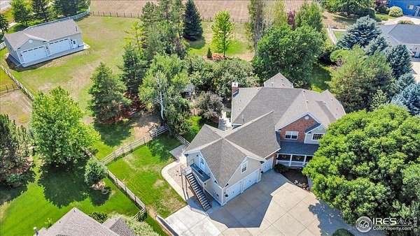 An opportunity seen infrequently in South Fort Collins, an acreage property for those who seek space, privacy, and an unbeatable location. Curated for hobbyist, car enthusiasts, and equestrians alike. 7507 Blue Water Ct boasts an impressive, near 7,000 total SF. Dual staircases, a feature few will oppose, sets the tone with a beautiful grand entry, and quick access to living areas above. A formal dining room, spacious office, and both a family room and living room, tastefully challenge the norm of open concept living found around the market today. The term "Outdoor living space" is a far cry from the remarkable setting and meticulous landscape this home offers. Expansive concrete patios, pergolas, gardens and an incredible waterfall/ lily pond, create an outdoor living experience you will be pressed to find anywhere else. Mountain views? Unobstructed. Horses? YES, the fully fenced and irrigated pasture is prime for the equestrian lifestyle.. Attached to the home, 9' doors lead you to the 1,128sf - fully insulated, heated, & finished garage which incorporates a "pass through" - front and rear garage door access on the eastern stall. Recently added, the nearly 1,600 SF shop has been thoughtfully and meticulously constructed without a dollar spared. Highlighted by multiple 220V outlets, an end to end wall of built - in tool boxes/ storage, gas heating, and more. As we step back inside, you'll find built-in speakers throughout the home, a central VAC system, along with a dual-climate HVAC system with high-efficiency furnace and A/C units. Three additional bedrooms upstairs include 2 full en-suite rooms, and an incredible bonus/ flex room with its own separate entry and balcony. Full property feature list is available upon request.