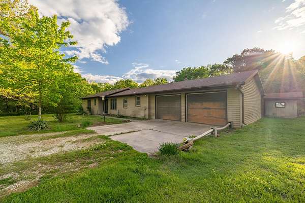 If you're looking for a private setting within a 30 minute drive of downtown Springfield, then this is your place! Nestled in the middle of 60 acres you'll find a comfortable ranch style home surrounded by woodland and no view of your neighbors. The home has 3 bedrooms, 2 full bathrooms, a spacious living room (23 x 15) and an additional room that could be used as a home office or hobby room, and leads to a large covered screened patio on the back. There's a two car attached garage as well as a detached garage/storage building. The land is mostly fenced, heavily wooded, and has a spring and wet weather creek. Approximately 12 acres along the highway frontage is open pasture land and a great space for a few farm animals. Behind the house is a small barn/loafing shed and animal enclosure. Located in the Willard School District, near corner convenience store, and easily accessed by state highways Z and BB.