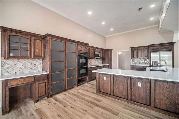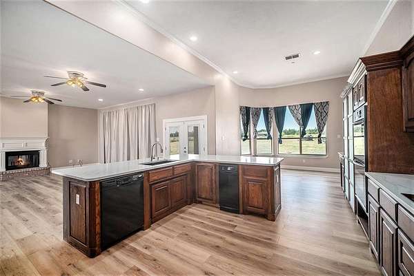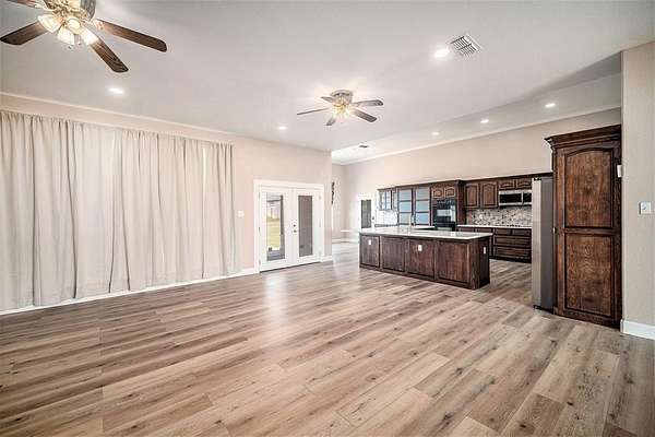 Experience the perfect blend of space, comfort, and flexibility at 7509 County Road 526. This 5-bedroom, 3-bathroom custom home offers over 4,460 sq ft of living space on a fully fenced 5-acre lot, with no HOA and located in Mansfield ISD. Inside, enjoy granite countertops, new luxury vinyl plank flooring, and a spacious layout ideal for entertaining or multi-generational living. The primary bathroom features dual vanities, a giant walk in closet, as well as a walk in shower and jetted bath tub! You will love the double sided fireplace that acts as a feature in both the living room and the dining room!