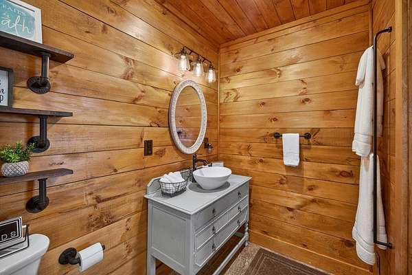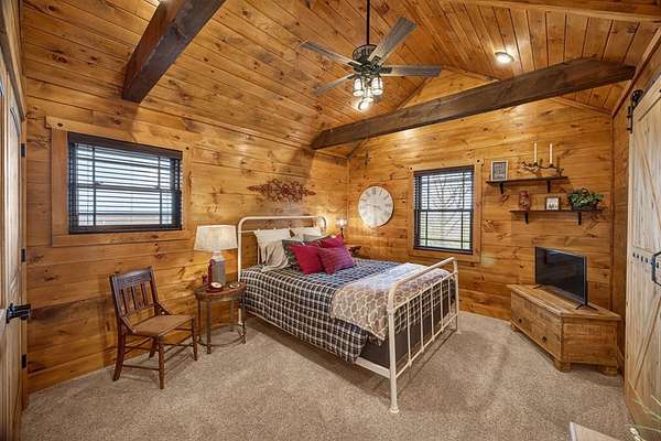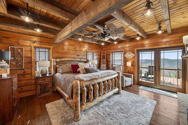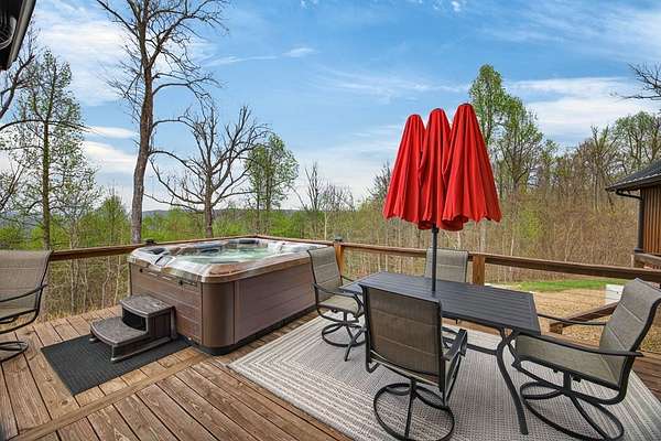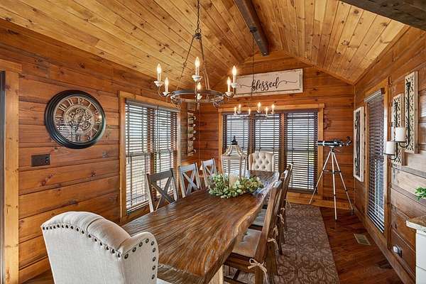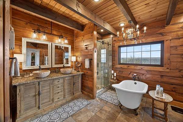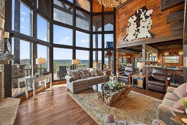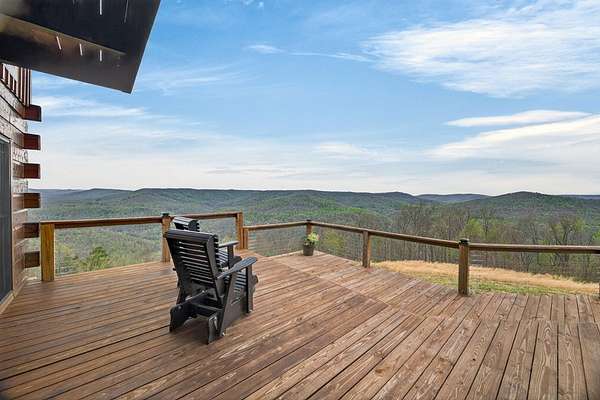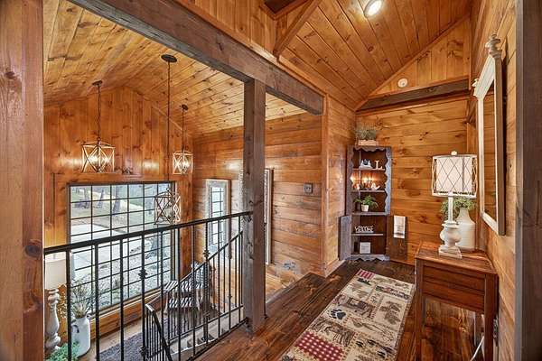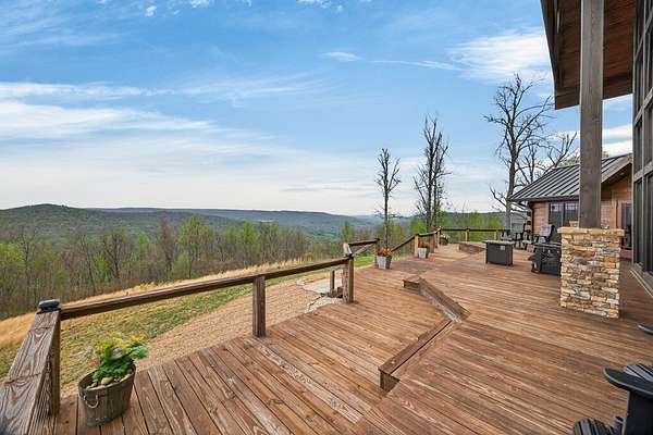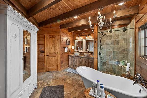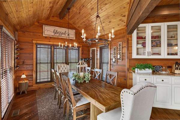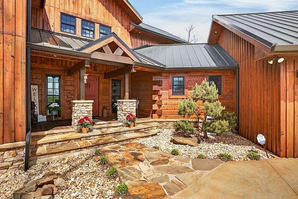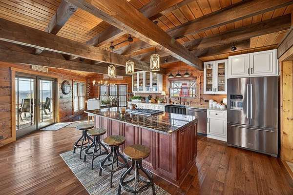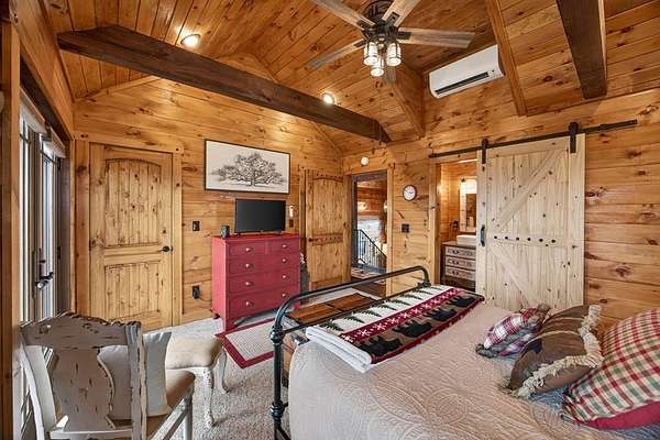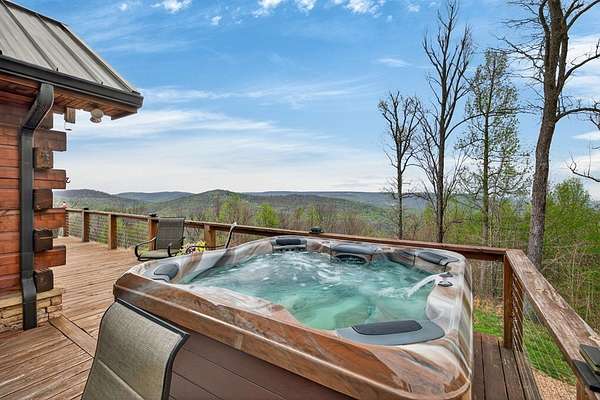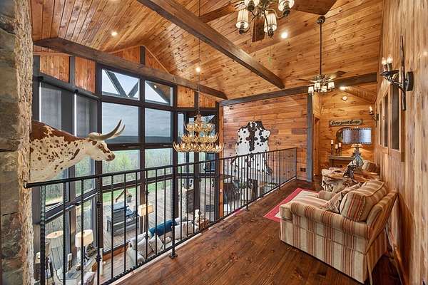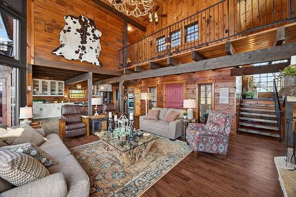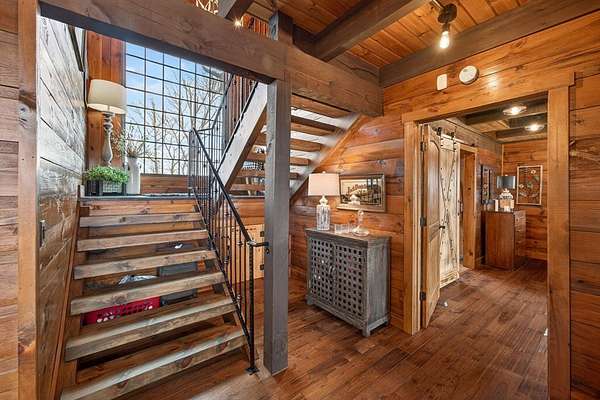 The end of the road is just the beginning at this private 7.51-acre retreat delivering panoramic mountain views with the feel of a luxury Smoky Mountain chalet, without the crowds. This hybrid log and board-and-batten home offers 2,684 sqft of thoughtfully designed living space plus 1,700 sqft of outdoor living space. Inside, you'll find hardwood floors, expansive windows, and a stunning floor-to-ceiling stone fireplace anchoring the main living area. The gourmet kitchen features granite countertops and KitchenAid stainless steel appliances, ideal for entertaining. Each of the three bedrooms includes a private ensuite, while the primary suite offers a second fireplace. A built-in security system, custom remote-controlled blinds, and integrated complete exterior lighting with one flip of a switch add comfort and peace of mind. Every inch of this home reflects thoughtful craftsmanship and upscale quality.