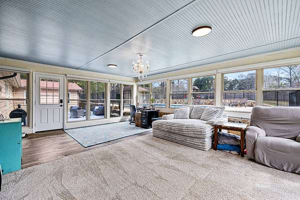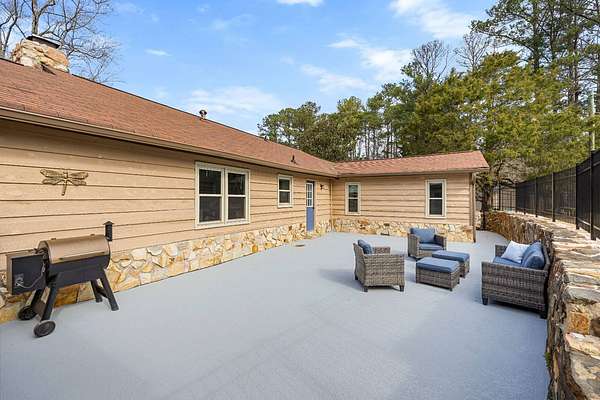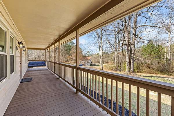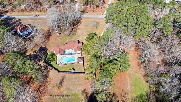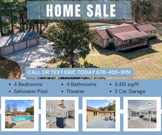 Beautifully updated ranch home on 1.6 private acres just 8 minutes from Serenbe and 15 minutes to Newnan. This 4 bedroom, 4 bathroom home offers 3,415 square feet with a highly desirable split-bedroom floor plan and en-suite baths in every bedroom. All four bedrooms are located on the main level, each featuring its own private bathroom, multiple walk-in closets, and generous storage throughout. The kitchen features granite countertops and opens to spacious living areas filled with natural light. The primary suite includes granite finishes and ample closet space. Interior updates have been completed throughout, and the exterior has been freshly painted. The finished basement includes: • Private movie theater • Dedicated office space Step outside to your backyard retreat: • 40x24 saltwater gunite pool • Large fenced backyard • Separate bathhouse with full bathroom • 1.6 acres of private land Additional features: • Air-conditioned sunroom • Detached 3-car garage • Chicken coop ready to be finished This property combines privacy, updated finishes, and resort-style outdoor living, all within minutes of Serenbe, Newnan and everyday conveniences.