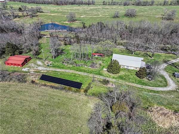 Welcome to your country escape! This spacious 5-bedroom, 3-bath farmhouse sits on approximately 10 acres (m/l), offering the perfect blend of open space and natural surroundings. The unique barn-style home is equipped with a whole-house generator and brand-new solar panels, giving you peace of mind and energy efficiency. Conveniently located just off the main road and close to town, this property features a charming chicken coop and a barn/horse barn—ideal for hobby farming or simply enjoying rural living. The land offers a mix of cleared areas and wooded acreage, providing both usability and privacy.