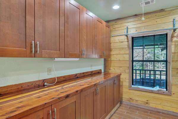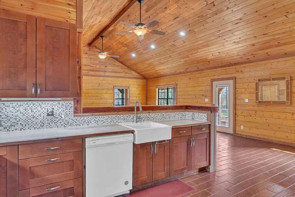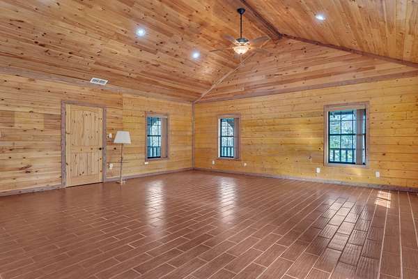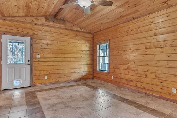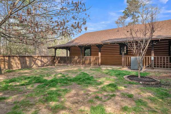 Nestled among the trees in Gregg County, this authentic Satterwhite log home at 751 Cherokee Lane offers a peaceful setting designed for those who appreciate nature and privacy. With over 2,000 square feet, the home features 3 bedrooms, 2 bathrooms, and a spacious open-concept living area highlighted by soaring wood ceilings, warm natural finishes, and abundant windows that bring the outdoors inside. The kitchen opens to the main living space, creating an inviting layout for everyday living or gathering with guests. Thoughtful details such as cedar-lined closets, custom cabinetry, and durable flooring reflect the quality craftsmanship associated with Satterwhite log homes. Outside, the property is beautifully landscaped and designed to enjoy the surrounding environment. A covered wraparound porch provides relaxing outdoor space, while nature paths lead to an approximately 1/2 -acre pond featuring a covered waterfront observation deck--an ideal spot to watch wildlife or unwind by the water. Additional highlights include an automatic gated entrance and a fenced backyard area. This unique property combines the charm of log-home living with the tranquility of a rural East Texas setting while remaining within convenient reach of nearby communities.