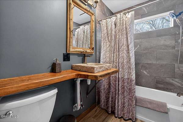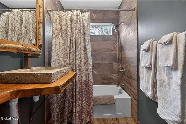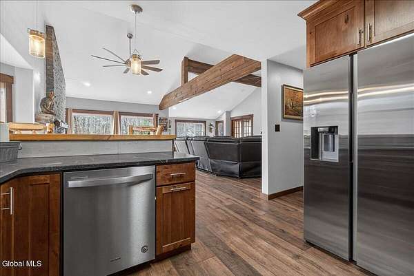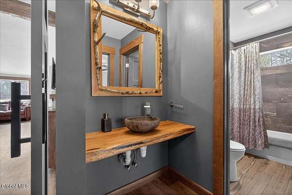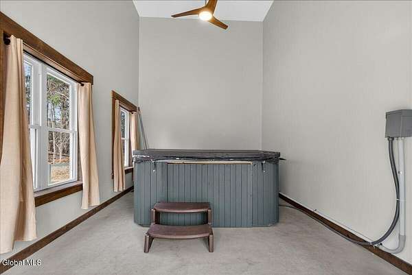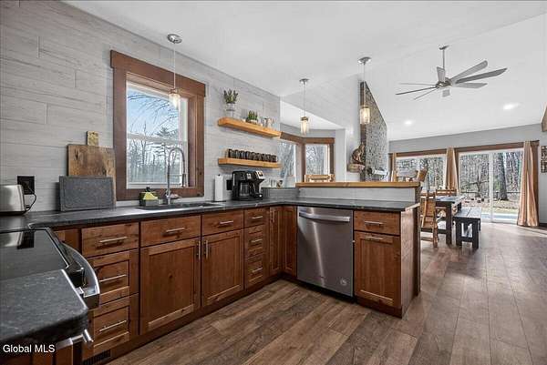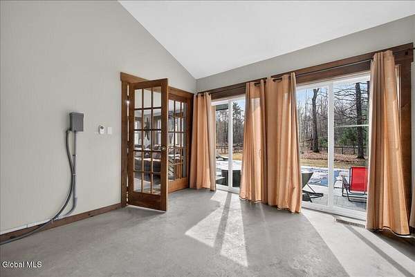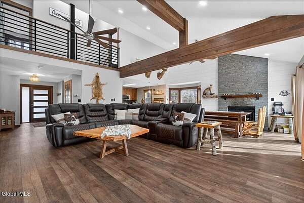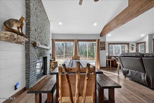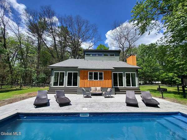 Gorgeous contemporary home on 2.33 acres, VERY close to West Mountain. You will love the two primary suites (one on the first floor), wood burning fireplace, inground pool, and stunning living room with vaulted ceilings. The open floorplan and indoor/outdoor flow makes it perfect for entertaining! Private setting set back from the road and spacious fenced backyard complete with pergola and fire pit area. The hot tub room provides a flexible space that could be used as an exercise room, art studio, office, or play room. The property has been successfully run as an Airbnb for the last two and a half years. This could be your new home, vacation home, or investment property. So many possibilities! The spacious basement is currently set up as a game room with painted walls and ceiling. Would be easy to finish out. This property is your gateway to the Adirondacks, half a mile to West Mountain, 17 min. to Lake George Village, 23 min. to Saratoga Springs. Take day trips to Lake Placid, Gore Mountain, and more!