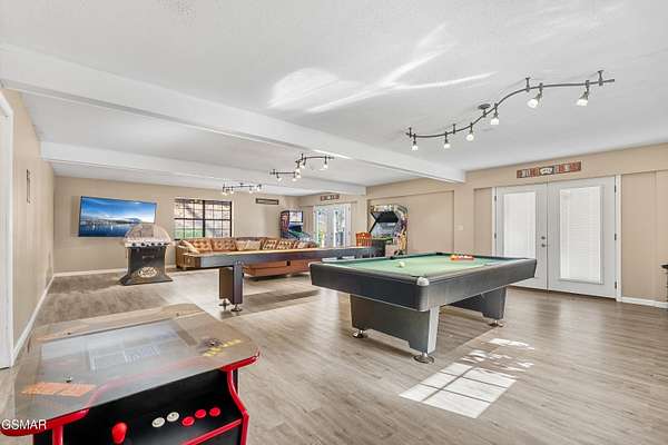Check out this investment property in a fantastic location-less that 5 minutes to the main parkway in downtown Gatlinburg and traveling the opposite direction, it is less than five minutes to the Rocky Top Sports Center. This property has so much to offer-three income producing, completely renovated properties all in one, plus an additional vacant parcel!! First is the majestic custom home with over 5,700 square feet featuring five spacious bedrooms and 4.5 baths, impressive game room, hot tub and a private outdoor in-ground heated pool. The main floor has an open concept living room, family room, dining room and a super large 'chef's dream kitchen' which is fully equipped with stainless steel appliances (including a 6 burner, double oven gas range), granite countertops, and beautiful cabinetry. Ensuite king bedroom on main floor includes fireplace, sitting area, wonderful bathroom with whirlpool tub. The game room and other bedrooms are upstairs. Spacious porch areas with dining and relaxing furnishings, hot tub and heated pool. Just across from this home, is a completely renovated duplex featuring one 2BD/1BA unit and a 1BD/1BA unit each with private hot tub. All furniture, furnishings, hot tubs, H&A units, some appliances, security system and more throughout all properties are just a couple of years old. There are so many features inside and out that make this property an excellent vacation destination for large groups, reunions or just a family getaway. The location is wonderful. Very easy access and plenty of level parking spaces. (The total number of BD's & BA's shown are for all three units as well as the total sq. ft. The main house has 5BD/4.5BA, 5,742 sq. ft. The duplex has a 1BD/1BA, 672 sq. ft. and a 2BD/1BA, 840 sq. ft. Total Property Tax is $2,514.93. The House & Apts. $2,424.61 and Vacant Lot $90.32) 2024 Gross Rent Income was over $206K!!