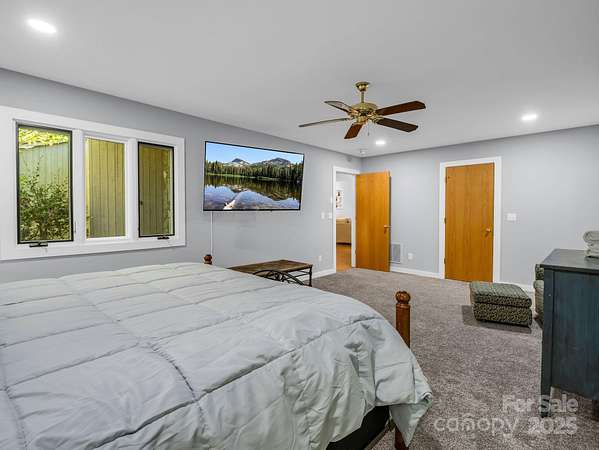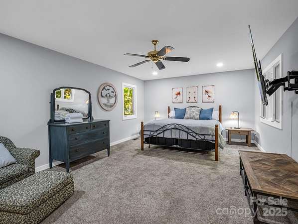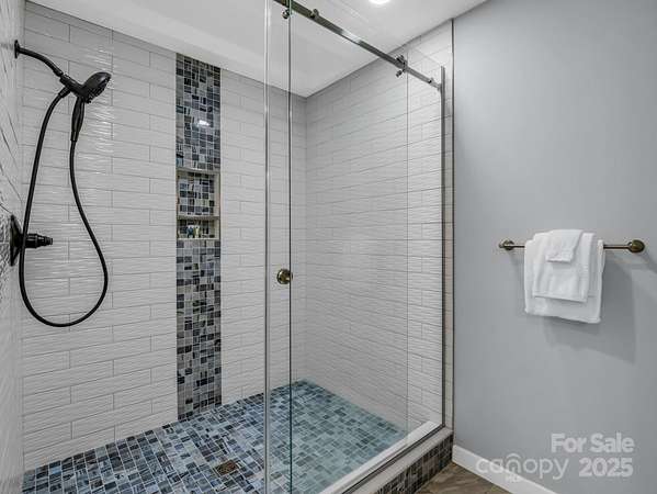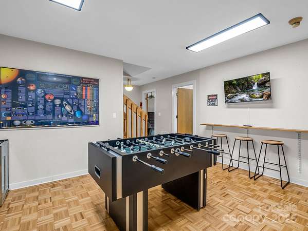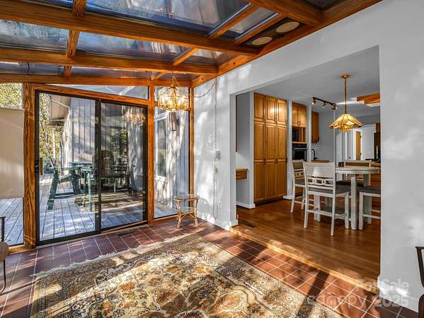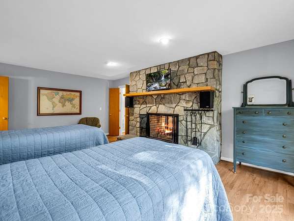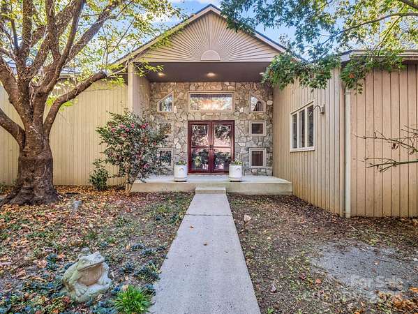Beautiful resort home on 2.4 private wooded acres within minutes to all the amenities of Rumbling Bald on Lake Lure's community, including 24/7 security, lake access, private beach, indoor/outdoor pools, tennis, pickleball & sports courts, two 18-hole mountain golf championship courses, fitness center, spa, restaurants, bars & more! This recently updated energy efficient home boasts 3 BRs + bonus guest room, 4 baths, large eat-in kitchen w/ newer appliances & an all-season glass room. The primary bedroom suite is on the main level, a double-sided stone wood-burning fireplace in the vaulted ceiling great room & guest room. There are two add'l BRs, a full bathroom, & rec room in the finished basement, & the unfinished portion offers additional options for more living space and ample storage. The oversized garage has plenty of room for 2 cars, a golf cart, and workshop area. Solar panels with 3 power walls for backup power. Two large decks along the back of the house overlook the natural setting & wildlife. This will make a great home and/or short-term vacation rental property.