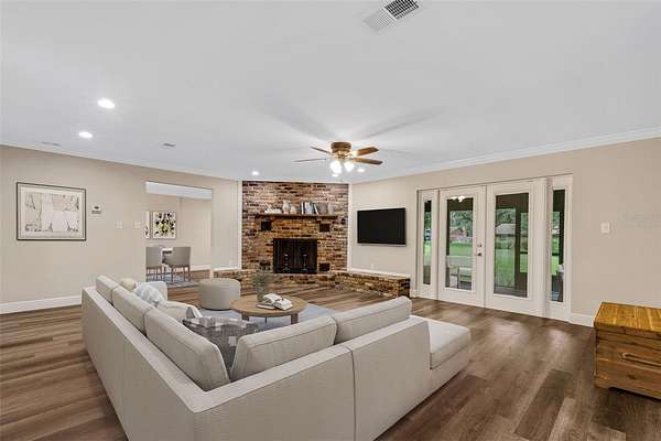 Nestled within the highly coveted Rolling Oak Estates, this beautifully remodeled home is a true showcase of thoughtful design, quality craftsmanship, and pride of ownership. Set on just under two acres of high and dry land, the property offers peaceful privacy with no HOA, surrounded by lush, meticulously maintained Pursley Seville grass and mature landscaping.