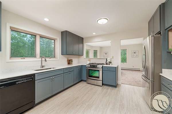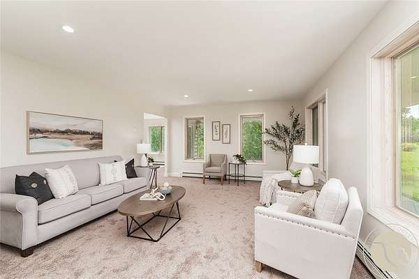 Large home with acreage just minutes from Red Lodge. 6-bed, 6-1/2 bath home on 7.2 wooded acres offers opportunity as a single-family home or income-generating property. Enjoy nearby Rock Creek, abundant wildlife, and stunning mountain views. Formerly licensed as a B&B, it's ideal for an Airbnb. Interior features a newly updated modern kitchen w/ Shaker style cabinets, quartz counters, and recessed lighting. Fresh paint, new flooring, and updated lighting throughout. Each bedroom has an ensuite bath. Primary bedroom has jetted tub. 2 laundry rooms. Wrap-around front porch. 40' composite deck w/ entry from breakfast nook and primary bedroom. Daylight basement has a kitchenette and opens to a covered patio. 30x40 heated shop and attached garage. New boiler 2022. Reroofed in 2020. 12-zone hot water heat, excellent producing well w/ purification system.