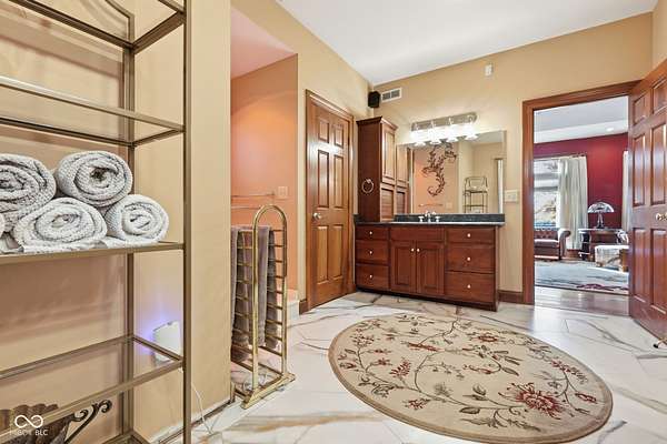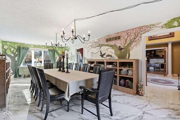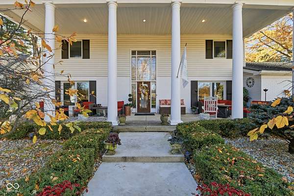 Amazing opportunity to create your next chapter on this gorgeous property set on just over 2 acres. Surrounded by the charm of the countryside yet minutes from Trader's Point Creamery, Zionsville Village, major interstates, restaurants, and shopping, it combines peaceful living with unmatched convenience. With over 4,000 square feet above grade, this home provides generous living spaces and endless potential for personalization. The main-floor primary suite, filled with natural light, offers a spacious retreat featuring double vanities, a walk-in shower, and a large walk-in closet. Upstairs, you'll find three additional bedrooms, including an expansive ensuite that could serve as a second primary, along with two other bedrooms and a full bath-ideal for family or guests. The open-concept layout centers around a large great room, perfect for gatherings, entertaining, or simply relaxing. The lower level adds even more flexibility, offering a recreation area, kitchenette, game space, and abundant storage. Outside, the detached three-car garage provides ample room for vehicles, hobbies, or workshop space. Whether you're relaxing on the sprawling covered front porch, hosting cookouts on the back patio, or simply soaking in the natural beauty of the surroundings, this property offers a rare opportunity to create something truly special in Traders Point.