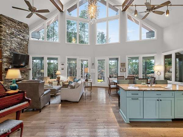 - Beamed Ceilings, Cathedral Ceiling(s), Ceiling Fan(s), Chandelier, Double Vanity, Entrance Foyer, Granite Counters, High Ceilings, Kitchen Island, Low Flow Plumbing Fixtures, Open Floorplan, Pantry, Primary Downstairs, Smooth Ceilings, Walk-In Closet(s), Walk-In Shower, Water Closet