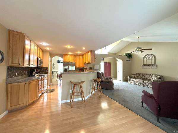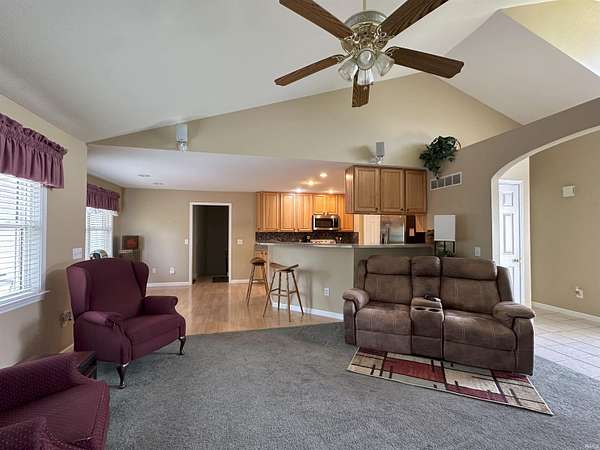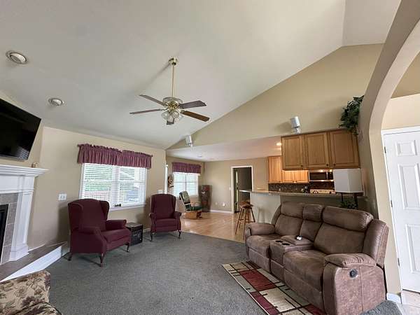 - 1 st Bedroom En Suite, Breakfast Bar, Ceiling Fan(s), Ceilings-Vaulted, Closet(s) Walk-In, Countertops-Solid Surf, Deck Open, Dishwasher, Dryer Hook Up Electric, Eat-In Kitchen, Formal Dining Room, Foyer Entry, Jet/Garden Tub, Main Floor Laundry, Main Level Bedroom Suite, Patio Covered, Porch Open, Refrigerator, Stand Up Shower, Tub/Shower Combination, Twin Sink Vanity, Washer Hook-Up, Water Heater Electric, Water Softener-Owned, Window Treatment-Blinds, Window Treatments