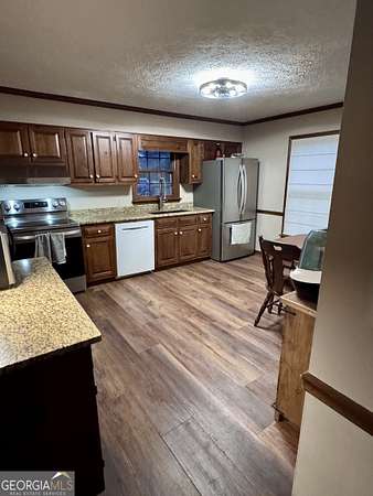 Beautifully updated all-brick home on a spacious 2-acre lot featuring 4 bedrooms, 3 full bathrooms, and 2 half baths. The seller has completed extensive updates throughout, including new interior paint, new flooring, nearly all new light fixtures, new landscaping, and a freshly pressure-washed and painted exterior. The basement now features central heating and air, adding 715 sq ft of additional finished living space that's comfortable year-round. The main level offers a large open living area with a masonry wood-burning fireplace, creating a warm and inviting atmosphere. The primary suite is generous in size, featuring his and hers walk-in closets and a custom-built luxury tile bathroom. Upstairs includes an additional 254 sq ft bedroom that provides great extra space, though it is not included in the heated square footage due to the absence of a dedicated HVAC vent. The basement also includes a wood-burning stove, perfect for cozy nights or supplemental heating. Outside, enjoy the durability and timeless charm of the all-brick exterior, along with a covered carport, storage shed (included in the sale), and plenty of room to relax or entertain. This property blends quality construction with modern upgrades and expanded living areas-wonderful opportunity to own a well-maintained home with exceptional space and value in the Winder area. Seller offering $5,000 towards buyer's closing costs! Plus, an additional $4,500 credit available when using our preferred lender.