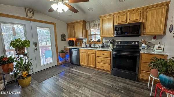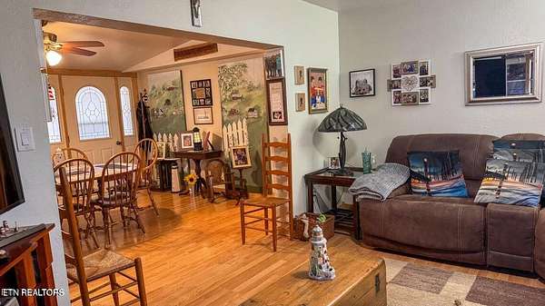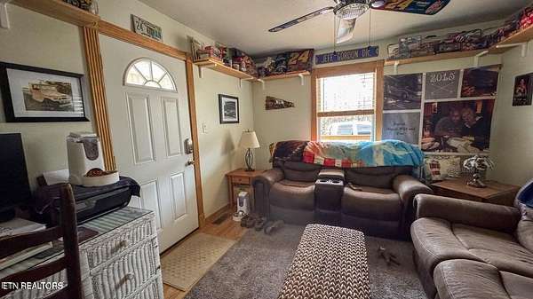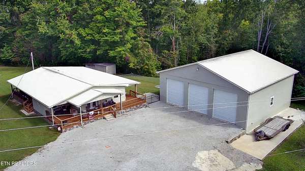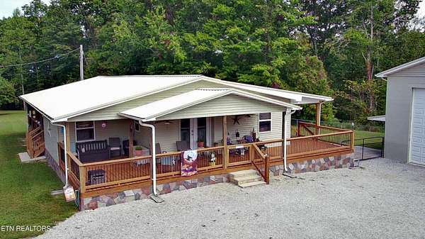 Welcome to this Impeccably Maintained Turn-Key Home in Winfield, Tennessee Nestled on 1.85 Acres in the peaceful setting of Winfield, TN, this residence offers the perfect combination of thoughtful upgrades, modern convenience, and timeless country charm. Situated in the heart of Scott County, the property provides direct access to East Tennessee's natural beauty, including Big South Fork National River & Recreation Area, Brimstone Recreation, and the ability to ride directly from your property onto Chitwood Mountain trails - a dream location for outdoor enthusiasts and adventure seekers alike. This turn-key property features 3 spacious bedrooms and 2 full bathrooms across a thoughtfully designed floor plan. Originally a manufactured home, the residence has been enhanced with frame-built additions on block foundations and porches on three sides, creating a seamless and substantial feel throughout. Every detail has been carefully upgraded to deliver comfort, efficiency, and style. Inside, the home welcomes you with vaulted ceilings, a semi-open layout, and durable laminate flooring throughout, with waterproof flooring in the kitchen and bathrooms. The custom hickory cabinetry in the kitchen pairs beautifully with laminate countertops and black stainless-steel appliances, including a side-by-side refrigerator, smooth-top range, dishwasher, and microwave. A stainless sink with disposal, dimmable can lighting, and an elegant arched doorway into the dining room create both functionality and warmth. The dining room is anchored by a free-standing gas fireplace with an oak mantle and hearth, while French doors lead to the expansive porches, offering indoor-to-outdoor flow perfect for entertaining or relaxation. Throughout the home, vinyl tilt-in windows with 2-inch Venetian blinds, knockdown-finish painted walls, ceiling fans in every room, and a 4-year-old gas furnace ensure lasting comfort. The primary suite offers a peaceful retreat, complete with two closets (one with mirrored sliding doors), an additional walk-in closet, and French doors that open directly to the back deck. The ensuite bath features a tub/shower combo and plenty of storage. A newly installed tankless water heater, high-speed internet, and a back-up gas heat source add further convenience. The utility room includes cabinetry, countertop workspace, and a sink base, while a den or office also opens to the back porch for versatility. Outdoor living shines here, with wrap-around porches on three sides, each equipped with ceiling fans. A fenced backyard, two producing apple trees, and attractive porch details such as rebar railing slats elevate the setting. Garage & Outbuildings The property's garage is truly exceptional - a 50' x 50' color-matched, stand-alone structure that is both wired and plumbed. Featuring three 12' x 14' garage doors with wireless remotes, concrete floors, three 30-amp receptacles, RV hookups with hot/cold water, a floor drain connected to its own septic system, and mounted air hoses for each bay, it is perfectly suited for hobbyists or professionals. A negotiable floor lift is also available. The garage also includes a fully equipped bathroom with dual-head shower, urinal, commode, and vanity, as well as a 16' x 16' loft for storage, workspace etc. . Outside, a 12' x 50' concrete pad accommodates RV parking or additional vehicles. The property also includes two wired storage sheds and an additional electric and sewer hookup with its own driveway, allowing for the possibility of a guest house or second residence. Location & Community Set in the quiet countryside of Winfield, this home places you within minutes of some of Tennessee's most sought-after outdoor destinations. Explore Big South Fork National River & Recreation Area with its miles of hiking, horseback riding, and kayaking opportunities. For off-road enthusiasts, Brimstone Recreation and Chitwood Mountain offering hundreds of acres of riding terrain.