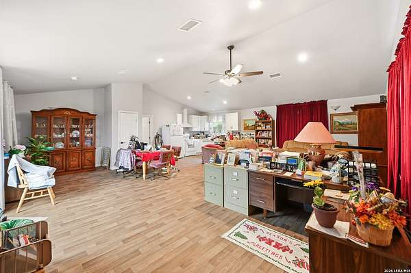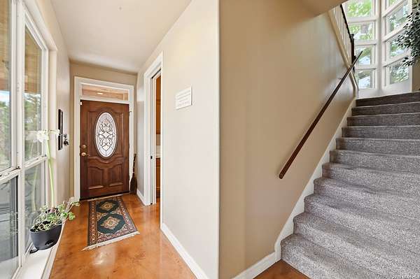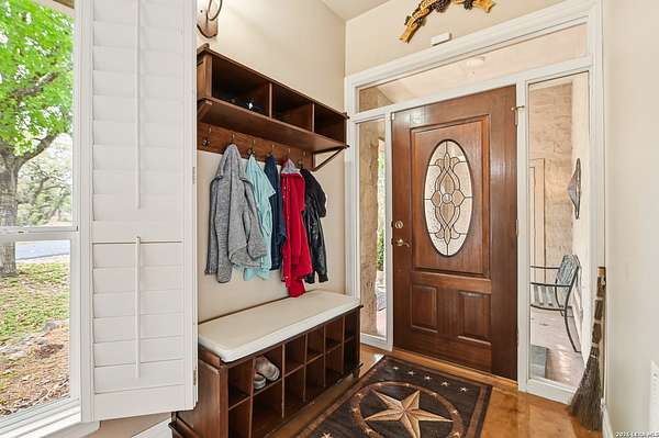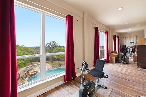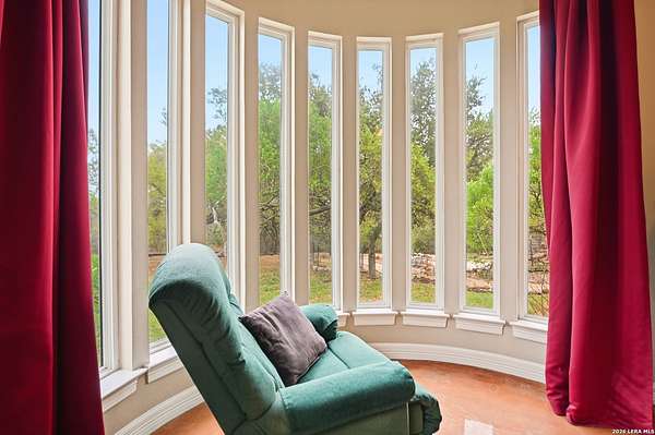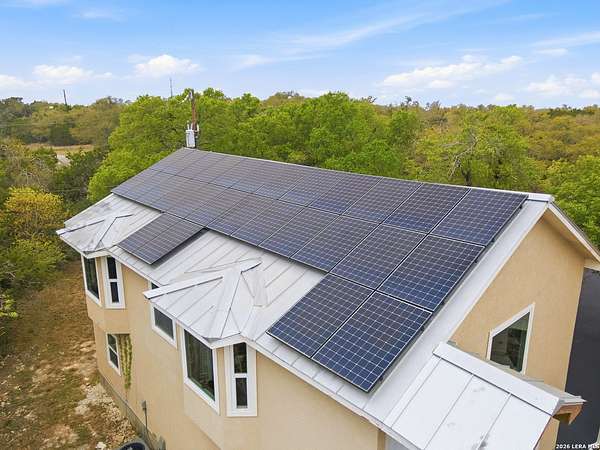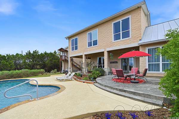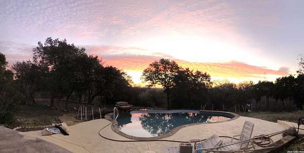 Discover Your Private Hilltop Oasis in the Heart of the Texas Hill Country Nestled atop a beautifully wooded hill, this extraordinary property offers the ultimate blend of tranquility and luxury living. Set on nearly 7.5 fully fenced acres in the serene Sheperds Ranch subdivision, this 3-bedroom, 2.5-bathroom home spans 2,847 sq. ft. of peaceful living space, surrounded by nature at its finest. Wake up to stunning sunrise views from every window in the back of your home, where you'll enjoy clear mornings with unobstructed views of the breathtaking Texas landscape. Positioned at the end of a quiet cul-de-sac, this property invites you to roam scenic trails, encounter wildlife in your backyard, or simply let nature come to you. With an infinity-style pool, serene water stream, and tranquil pond, the expansive outdoor space offers an idyllic setting for relaxation or outdoor play. Whether you're stretching out in the front yard or enjoying the picturesque views, nature becomes your playground. The home's interior is just as impressive. The open-concept kitchen features a center island, granite countertops, custom cabinetry, and built-in appliances - perfect for both cooking and entertaining. Concrete-stained floors downstairs add a modern touch, while plantation shutters on all front-facing windows lend a sense of elegance. The first-floor master retreat offers a luxurious spa-like bath and a dedicated study area, creating the perfect private sanctuary. Upstairs, the spacious game area offers a flexible space for family fun or a quiet retreat. Natural light pours into the living room, thanks to large windows that frame the stunning views. In addition to the home, the property includes a historic 1,800 sq. ft. metal barn with partial concrete flooring. With power and water reconversion possibilities, this space is ideal for a workshop, studio, or even additional storage. As if this wasn't enough, your home also offers a charming 1-bedroom, 1-bathroom apartment located above the 3-car garage. Perfect for guests or as a private getaway. This home provides the perfect escape from city life, yet it's conveniently located close to major highways (281 and 46), offering easy access to shopping, dining, and everything the Texas Hill Country has to offer. Whether you're exploring nearby San Antonio, New Braunfels, or Boerne - or venturing out to wine country - you'll enjoy the peace and serenity of this exceptional property. Once you visit, you won't want to leave. Your dream home awaits. Property includes: Water well, solar panels, generator