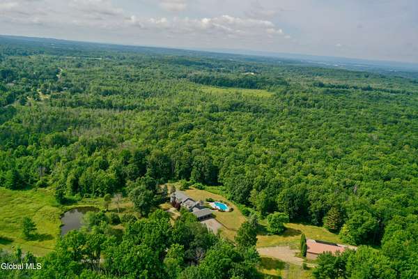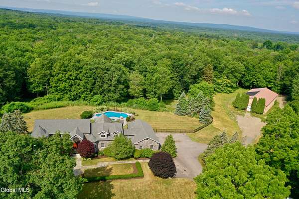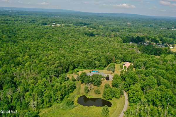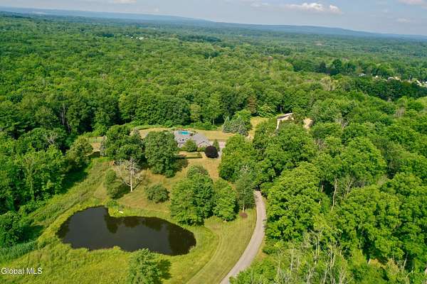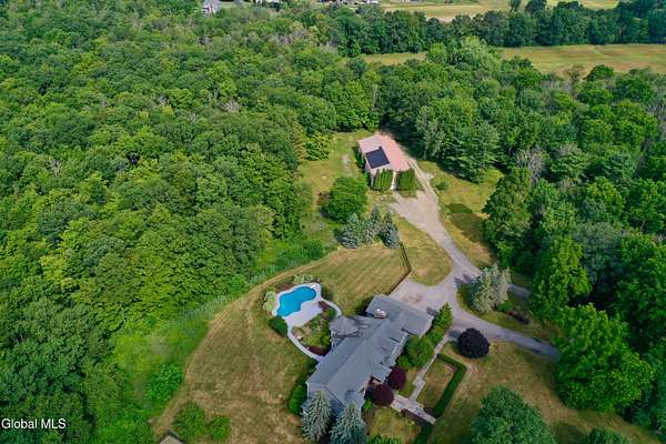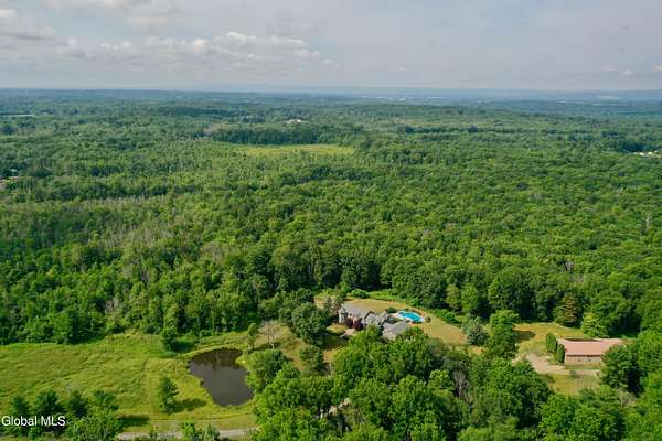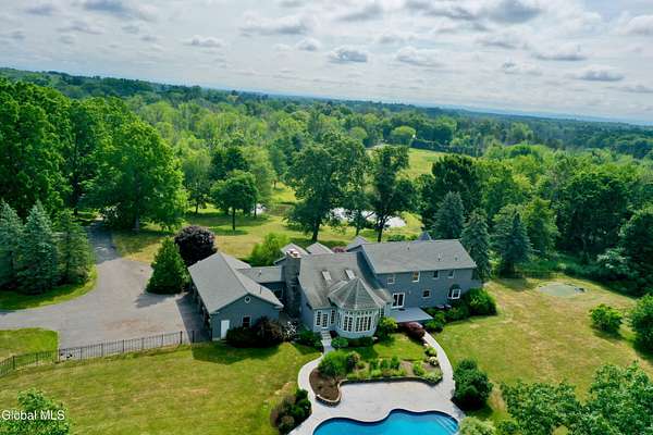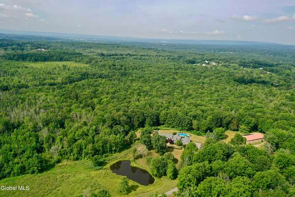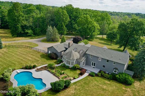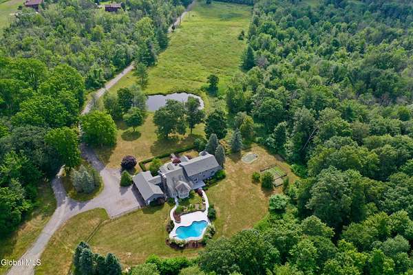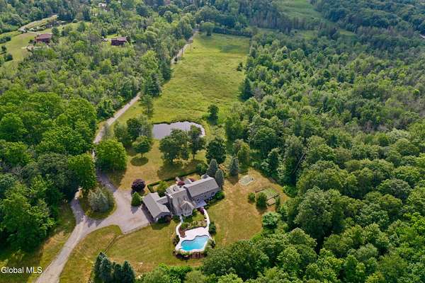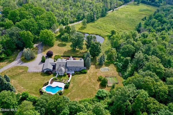 Welcome to this exceptional private estate nestled on 52.36 picturesque acres, offering the perfect blend of luxury and functionality. A serene pond and expansive grounds set the tone for this truly special property. Outdoor features include a large Barn with endless possibilites. An inground pool surrounded by stamped concrete patios and gardens. Inside,the home boasts a spacious family room with a stunning floor to ceiling stone fireplace, a sun-drenched porch with radiant heat, and an elegant combination living and dining area highlighted by rich cherry floors. The gourmet kitchen is a chef's dream, complete with granite counters, a sub-zero refrigerator, double wall ovens, large center island, and a breakfast nook. Close to everyday amenities and a short drive to Saratoga Springs.