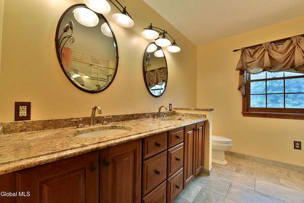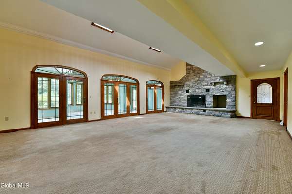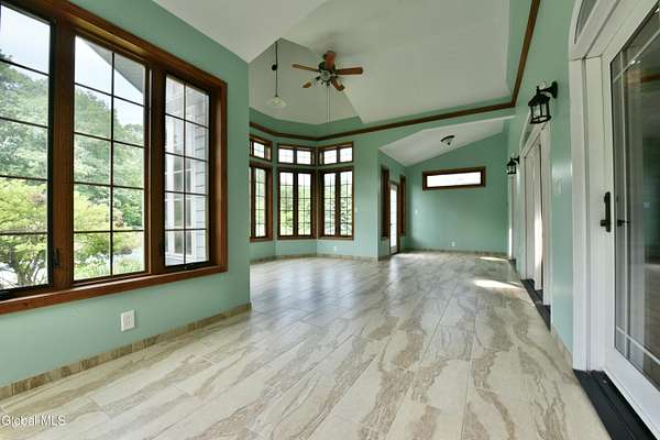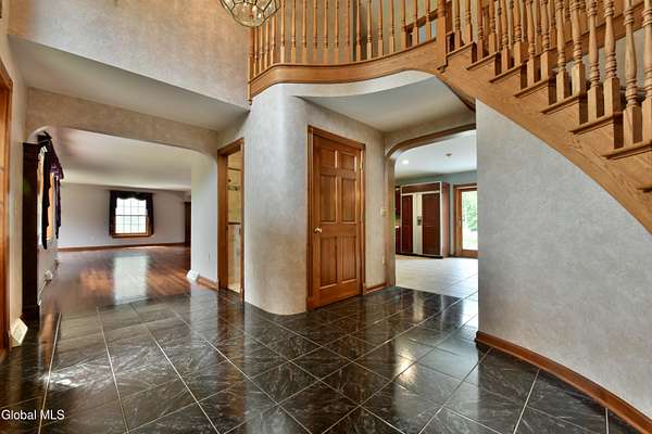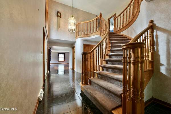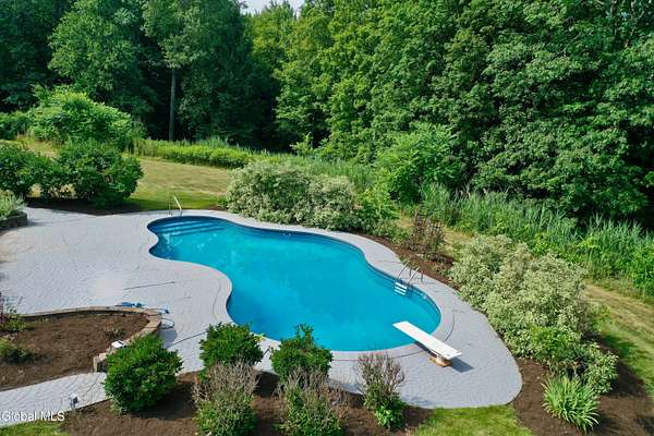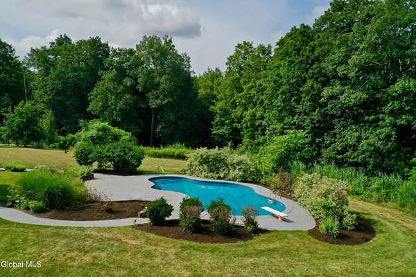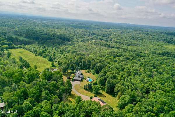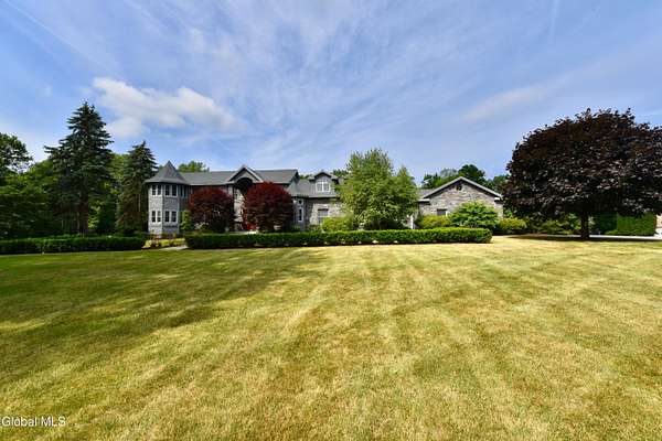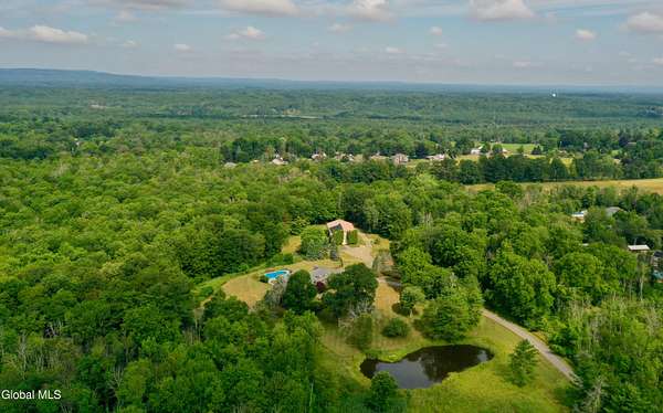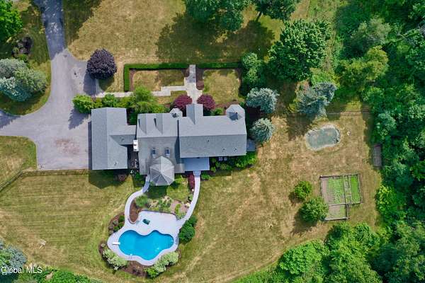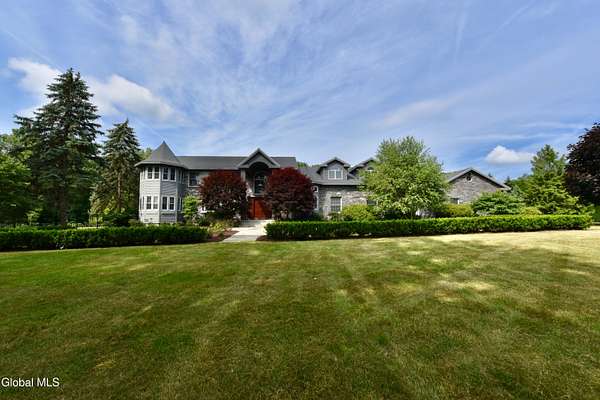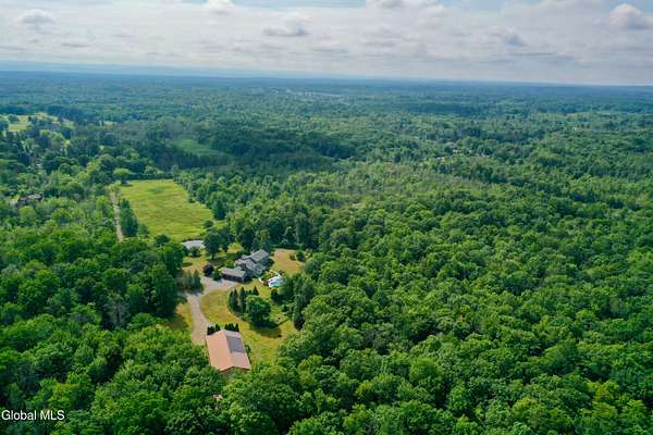 Welcome to this exceptional private estate nestled on 52.36 picturesque acres, offering the perfect blend of luxury and functionality. A serene pond and expansive grounds set the tone for this truly special property. Outdoor features include a large Barn with endless possibilites. An inground pool surrounded by stamped concrete patios and gardens. Inside,the home boasts a spacious family room with a stunning floor to ceiling stone fireplace, a sun-drenched porch with radiant heat, and an elegant combination living and dining area highlighted by rich cherry floors. The gourmet kitchen is a chef's dream, complete with granite counters, a sub-zero refrigerator, double wall ovens, large center island, and a breakfast nook. Close to everyday amenities and a short drive to Saratoga Springs.